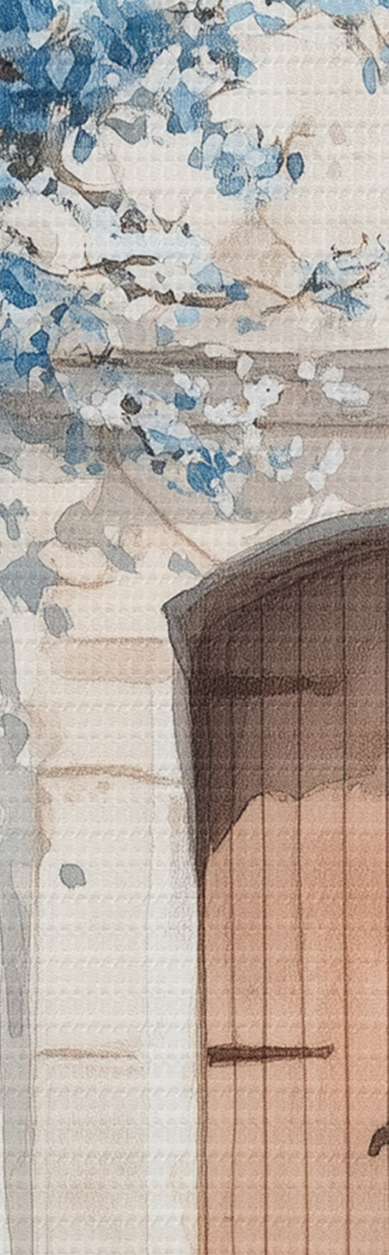 Картина Грецький будинок з красивим деревом, архітектура, акварельний стиль s43178