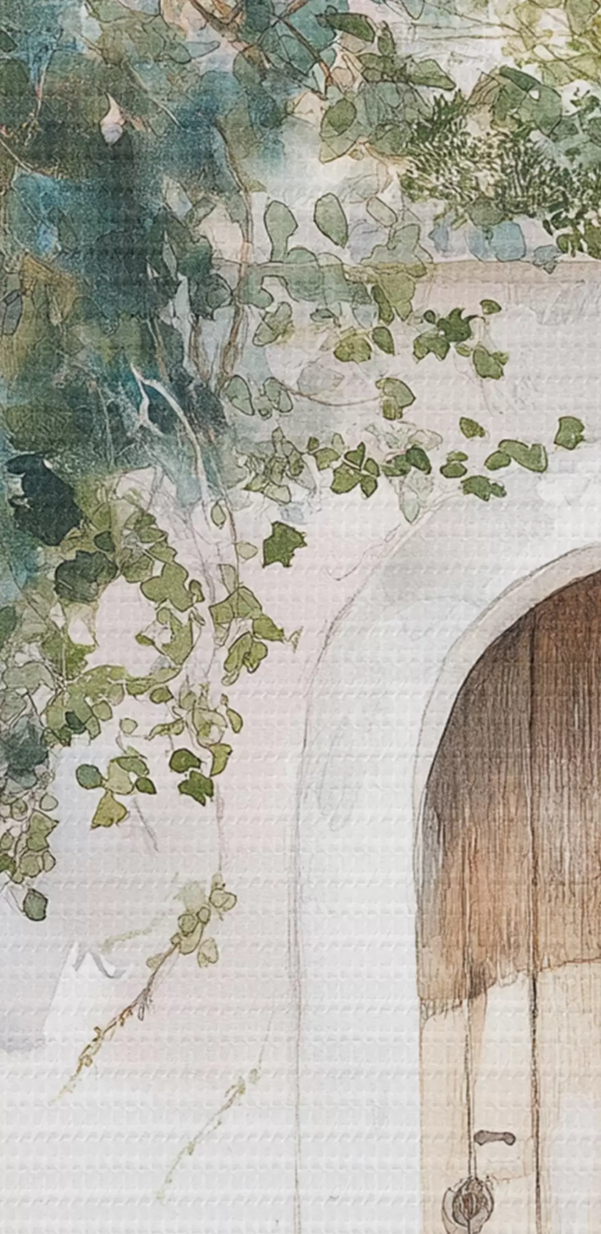 Картина Гарний білий будинок з квітучим деревом, середземноморський, акварельний стиль s43179