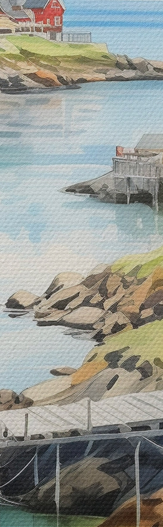 Картина Літній пейзаж Лофотенських островів, червоні будиночки, гори, човни Арт. s43187