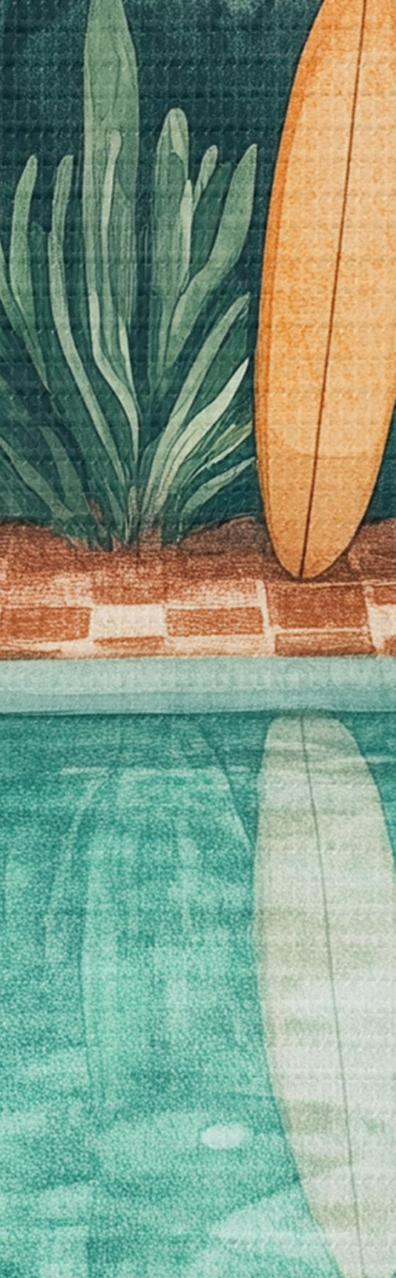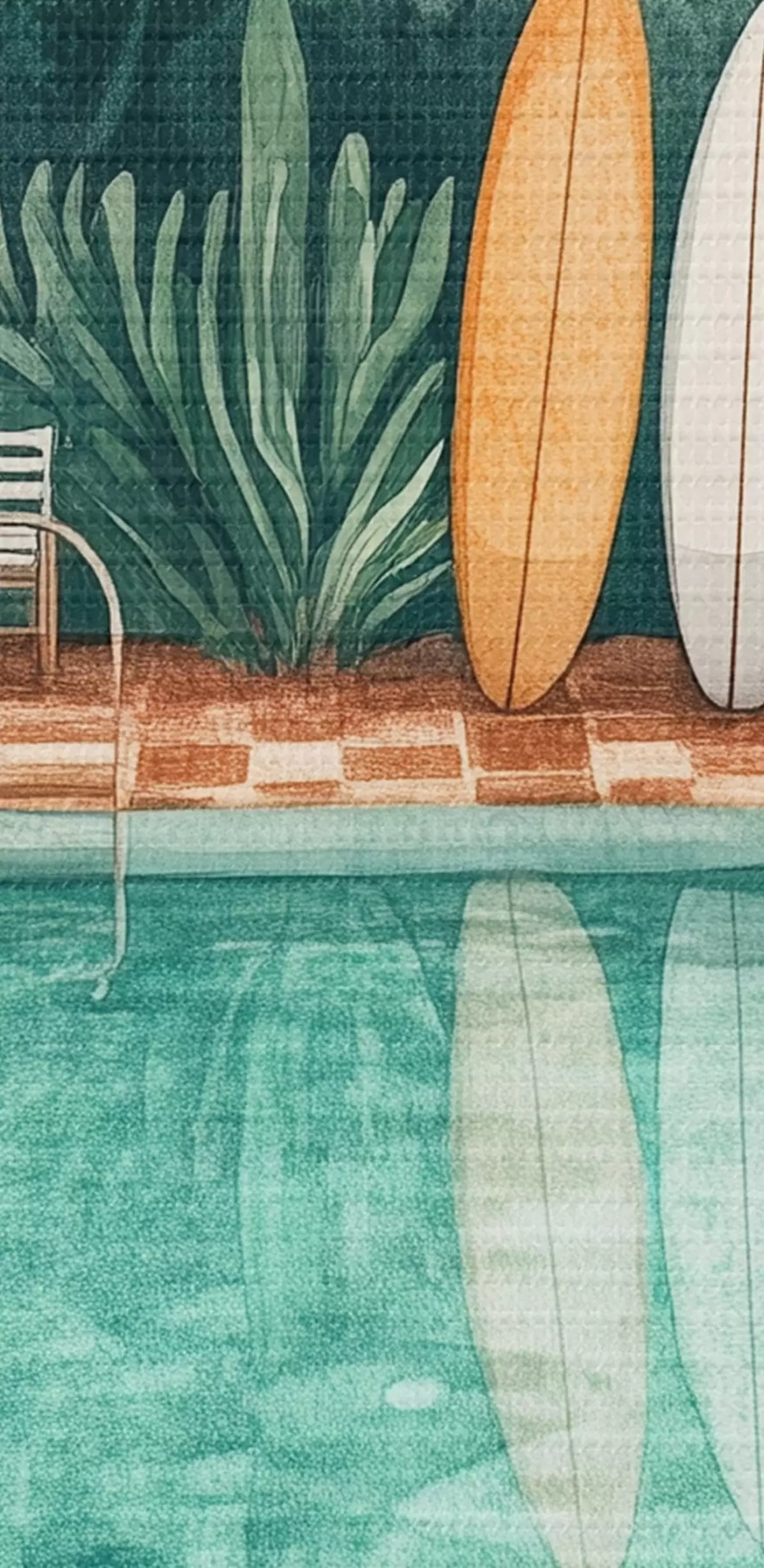 Картина Вінтажний літній басейн, тропічний ліс, зелень, пальми, акварельний стиль Арт. s43191