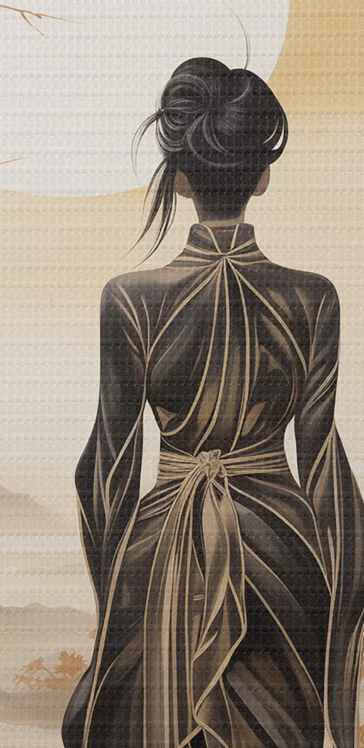 Картина Люди, Японія, дівчина на заході сонця на тлі сакур і гір Арт. s43256