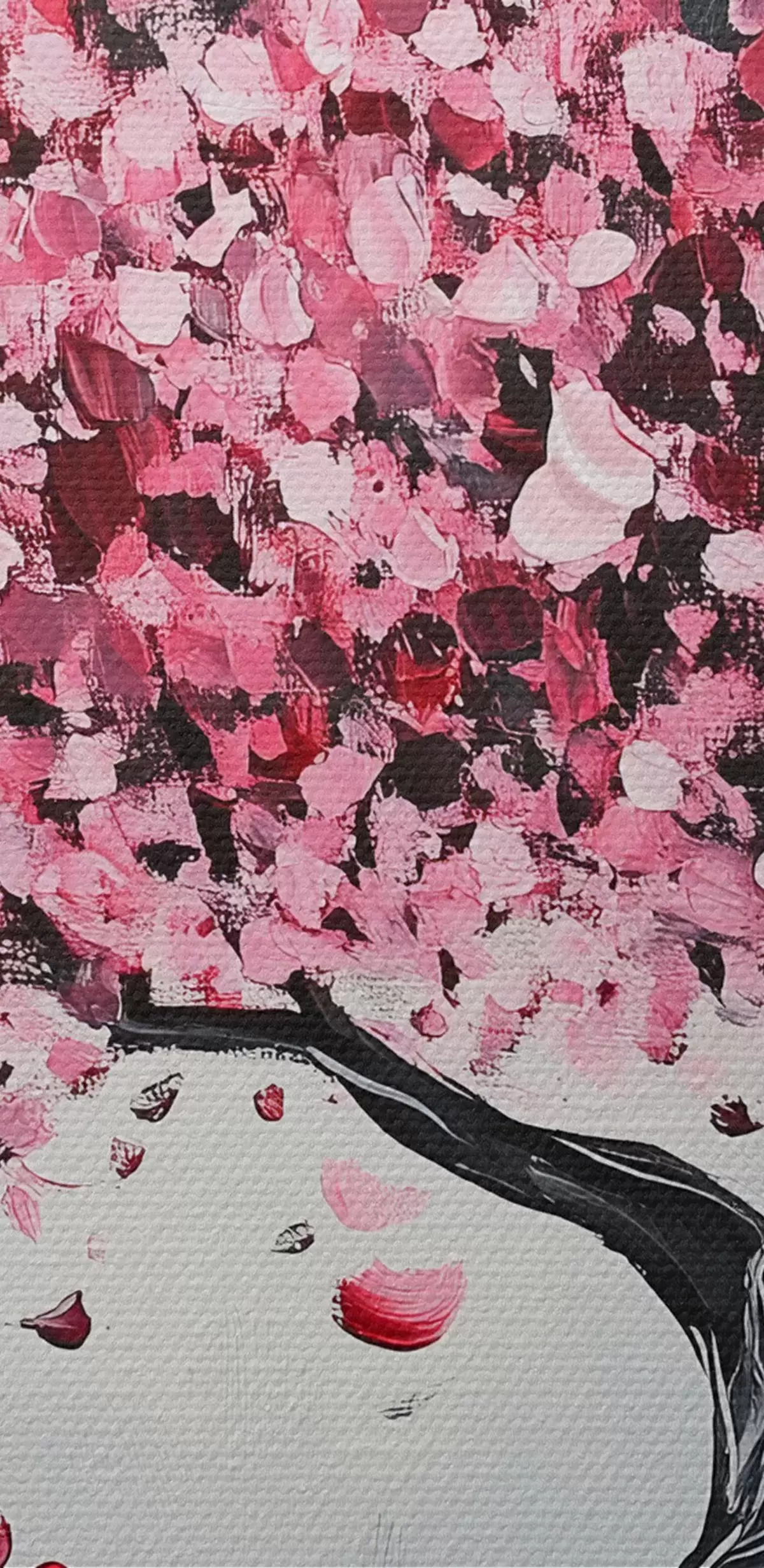 Картина Рожеве квітуче дерево на сірому тлі Арт. s43299