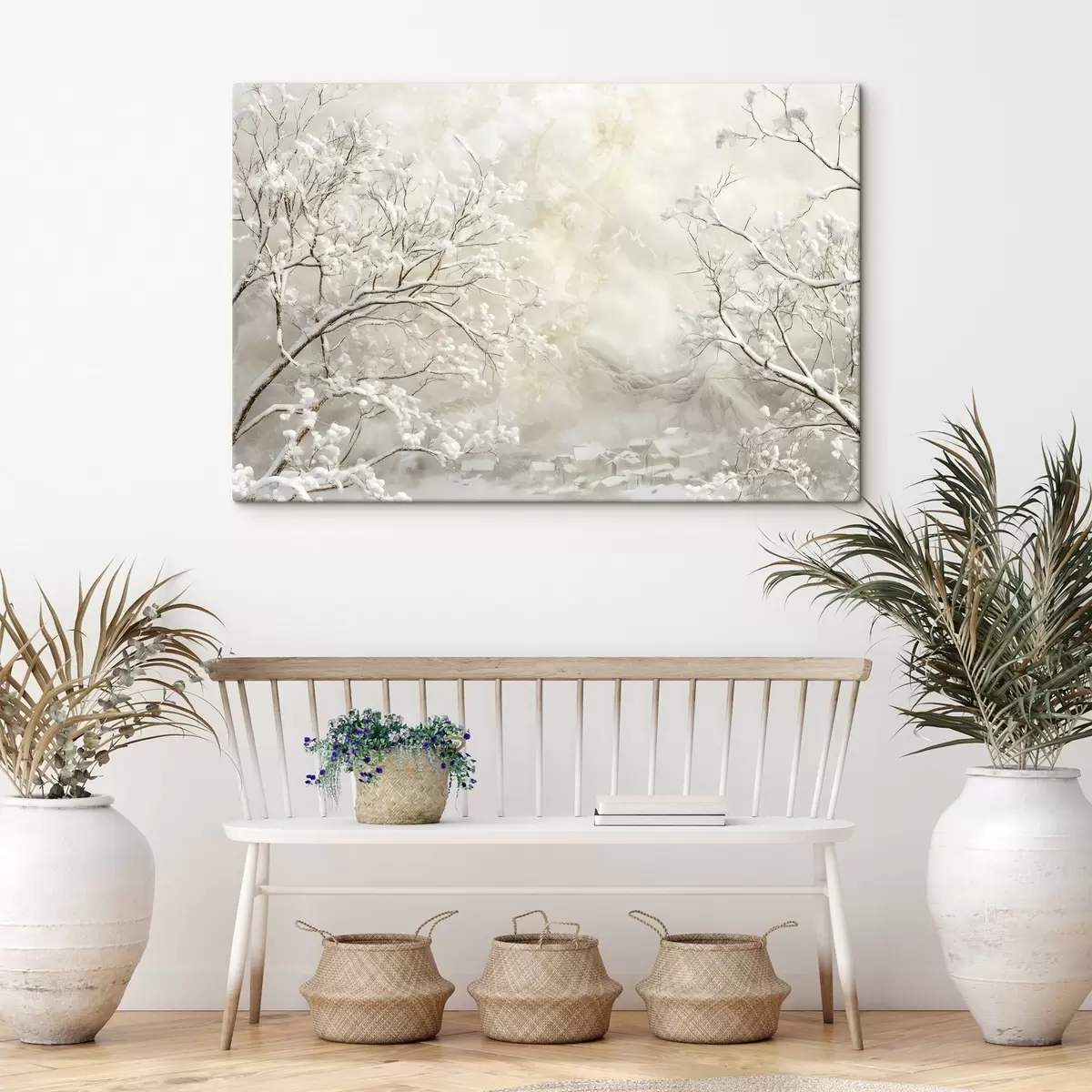 Картина Зимові гілки зі снігом на тлі зимового села Арт. s43321