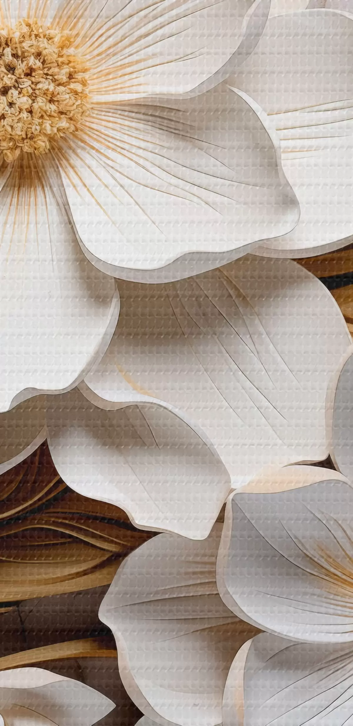 Картина Білі квіти в стилі рельєфної фрески з жовтим листям і тичинками Арт. s43330
