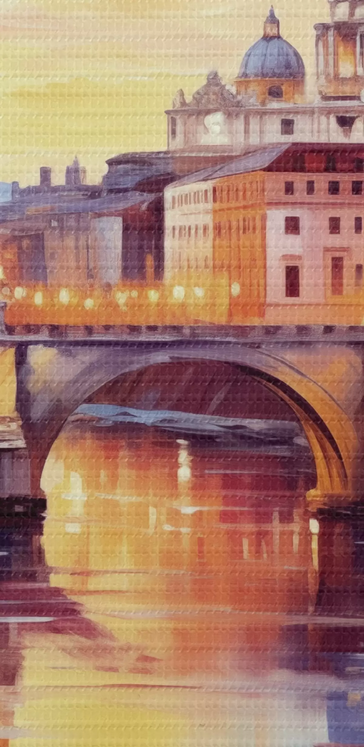 Картина Собор Святого Петра і міст через річку на заході сонця, теплі кольори, відображення у воді, олійний живопис s43396