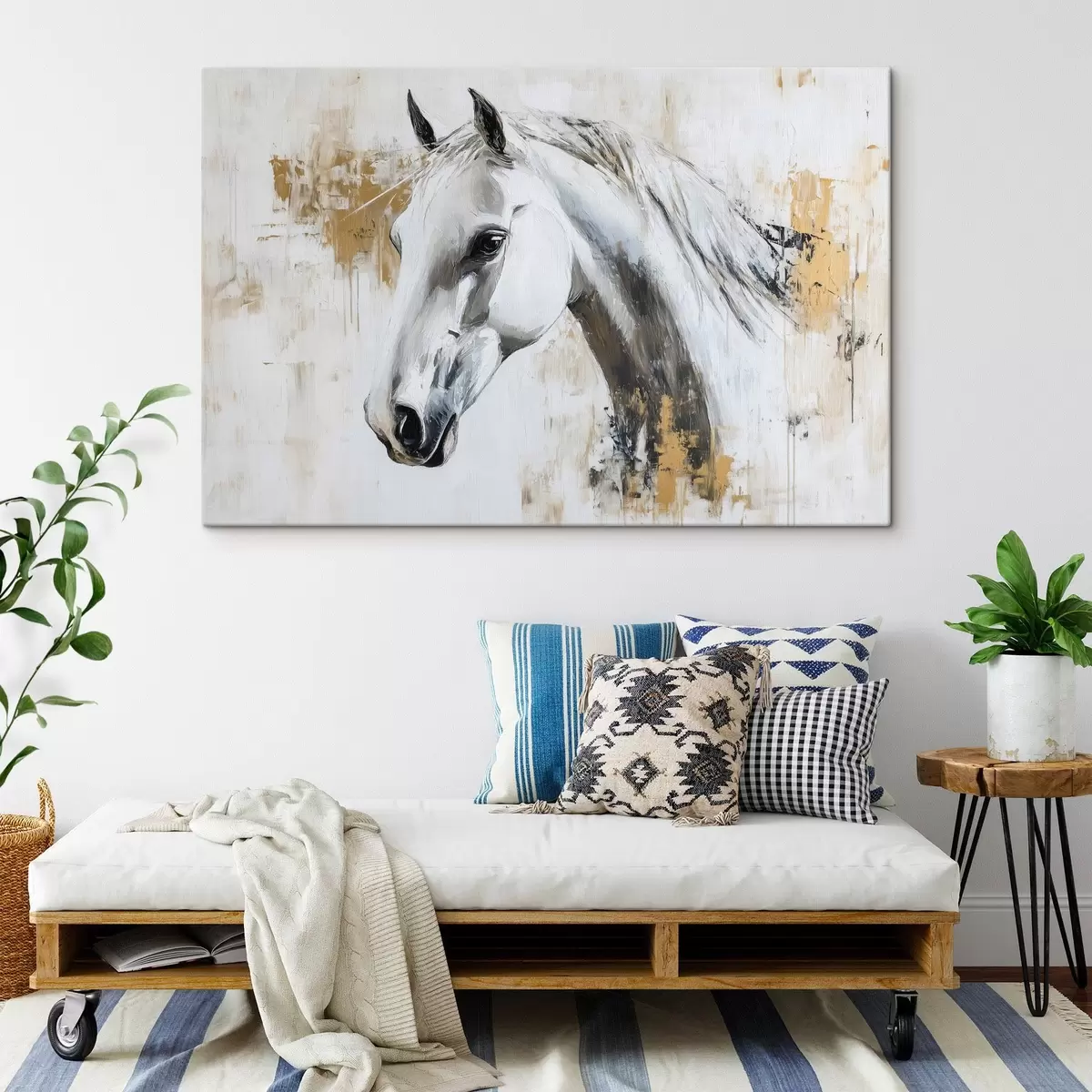 Картина Білий кінь, малюнок олією, тварини, яскраві мазки s43497