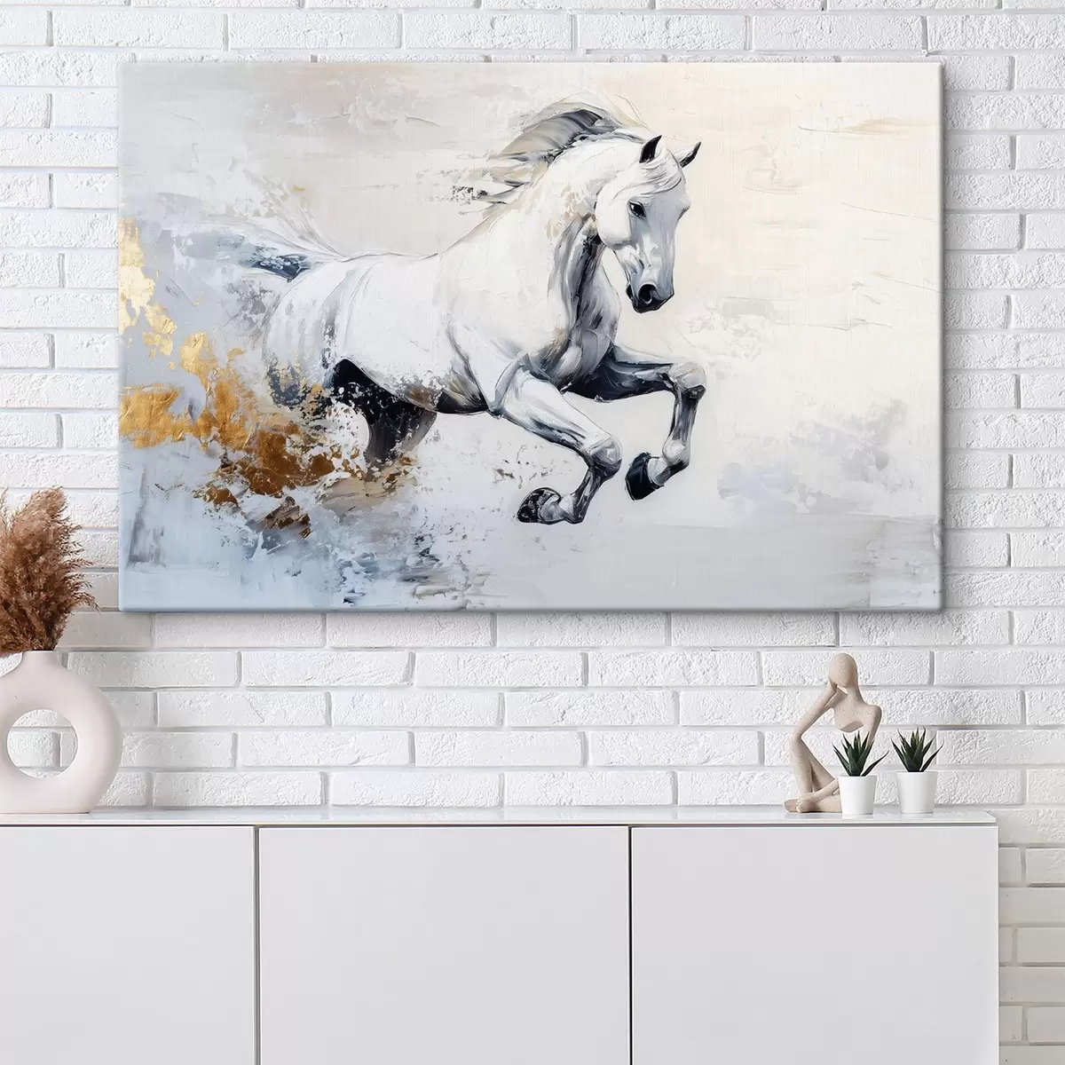 Картина Біжить білий кінь, малюнок олією, тварини Арт. s43498