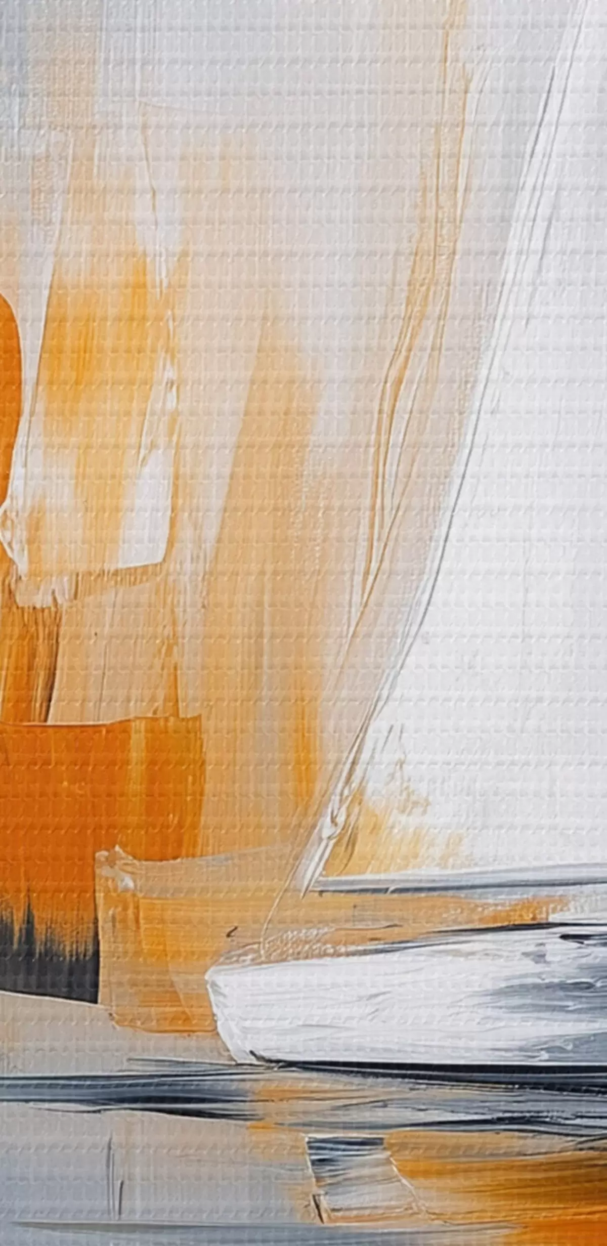 Картина Вітрильники, абстракція, малюнок акрилом, сірий і помаранчевий s43499