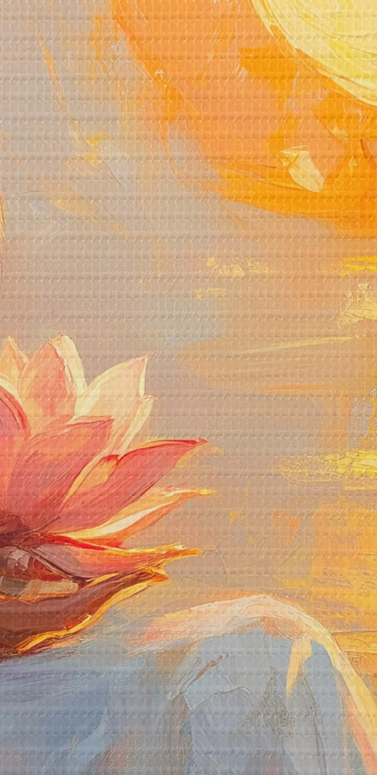 Картина Жінка з квіткою лотоса на заході сонця, білий птах, малюнок олією s43501