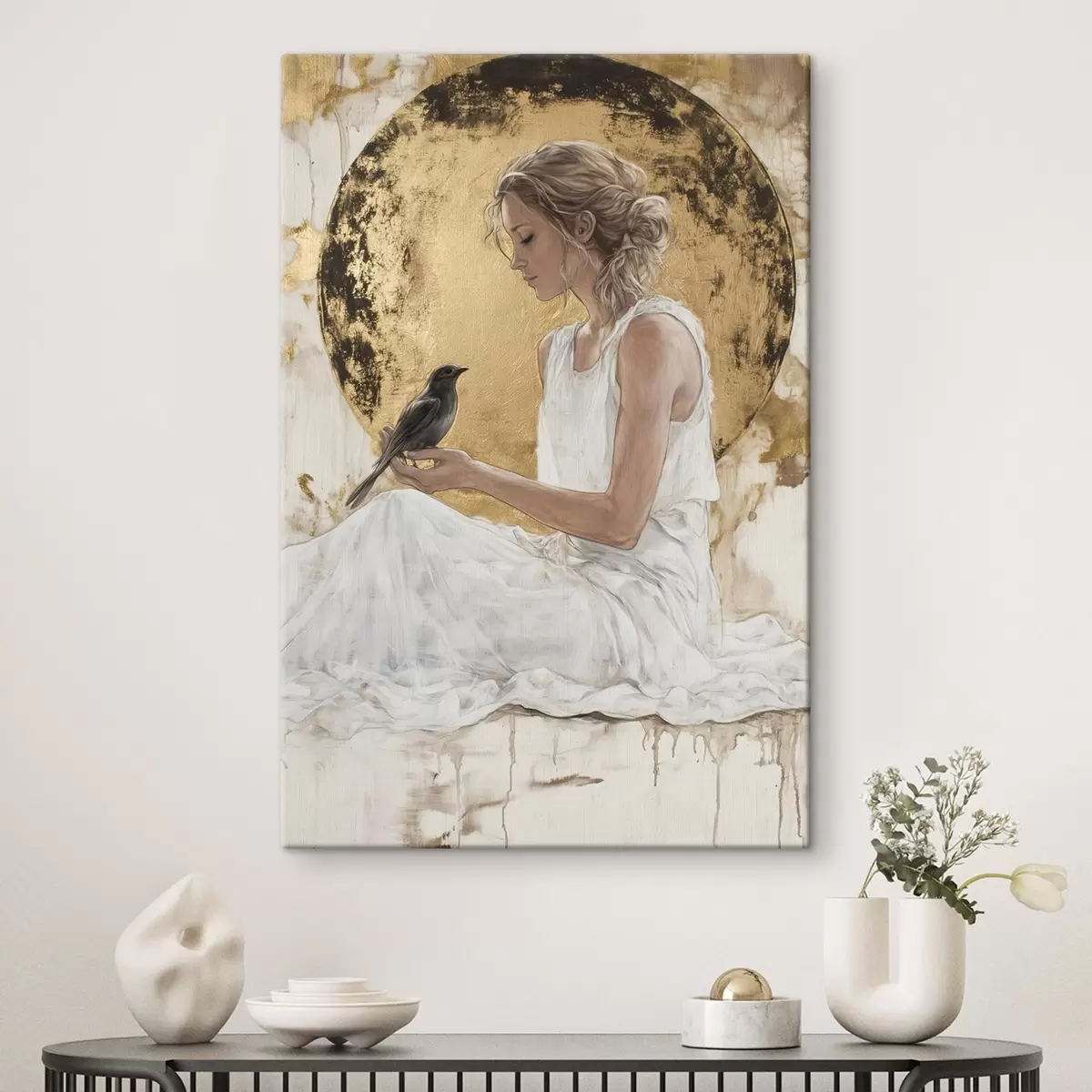 Картина Красива жінка з птахом, Греція, малюнок в стилі акрилу Арт. s43503