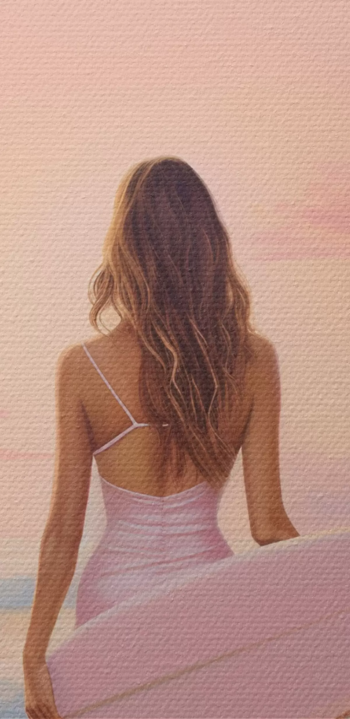 Картина Дівчина з дошкою для серфінгу на океанському пляжі, захід сонця, акриловий малюнок s43881