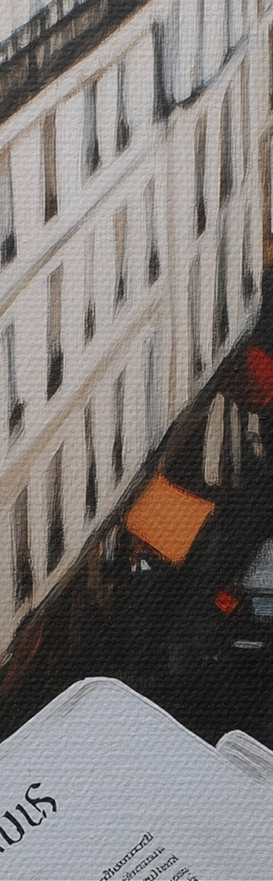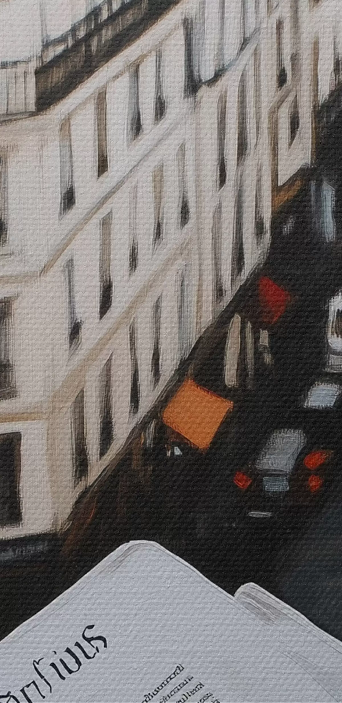 Картина Ранкова кава з круасанами, міська вулиця, архітектура, олійний стиль s43891
