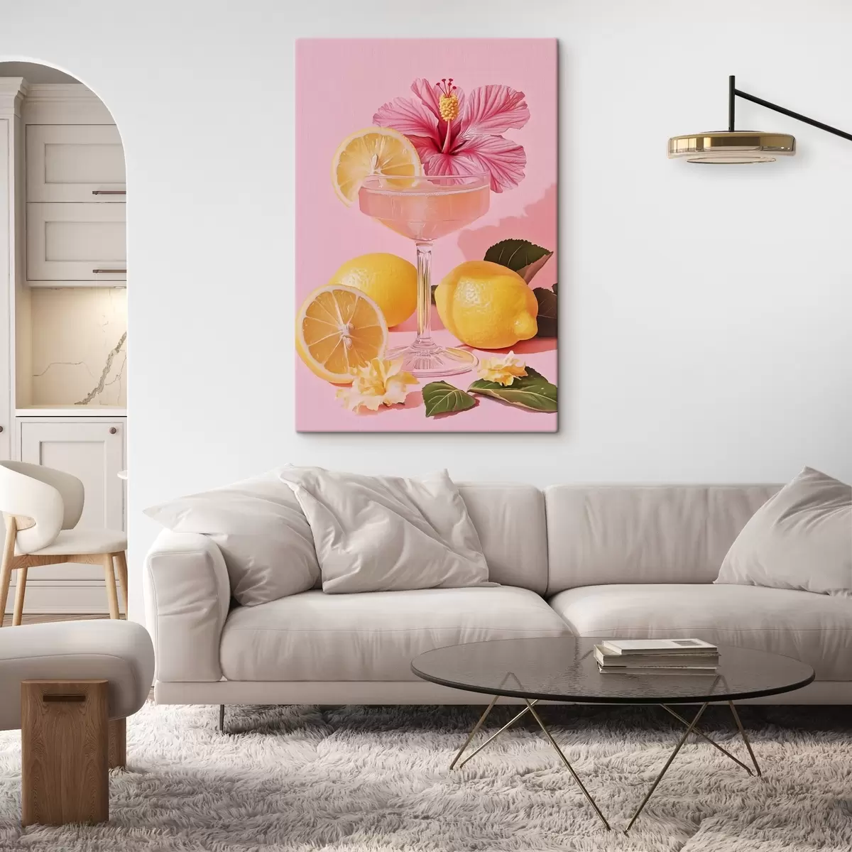 Картина Рожевий коктейль з квіткою гібіскуса, лимонами, реалізмом s43893