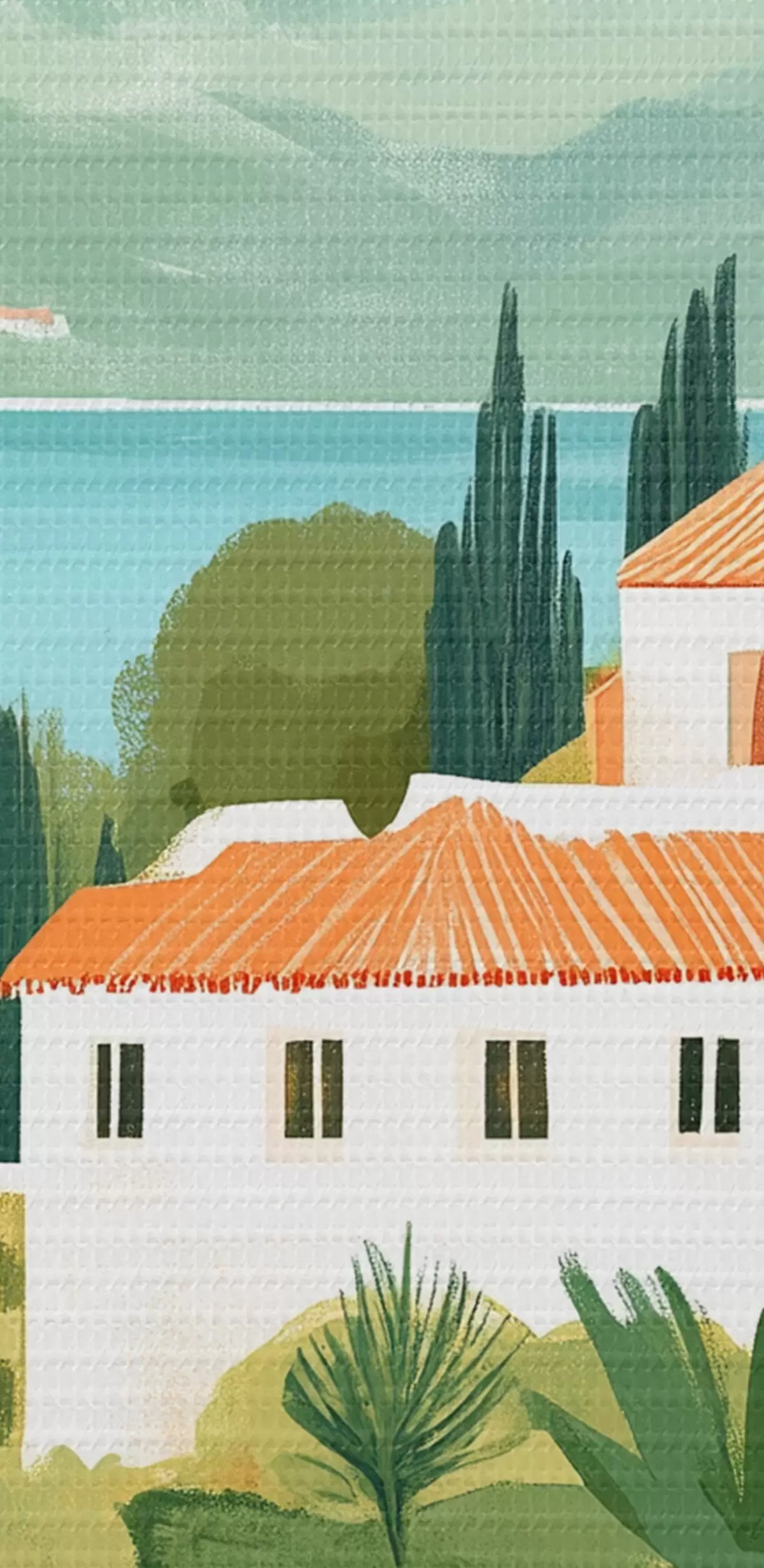 Картина Середземноморські пейзажі з апельсиновими деревами та будинками, морське узбережжя s44027