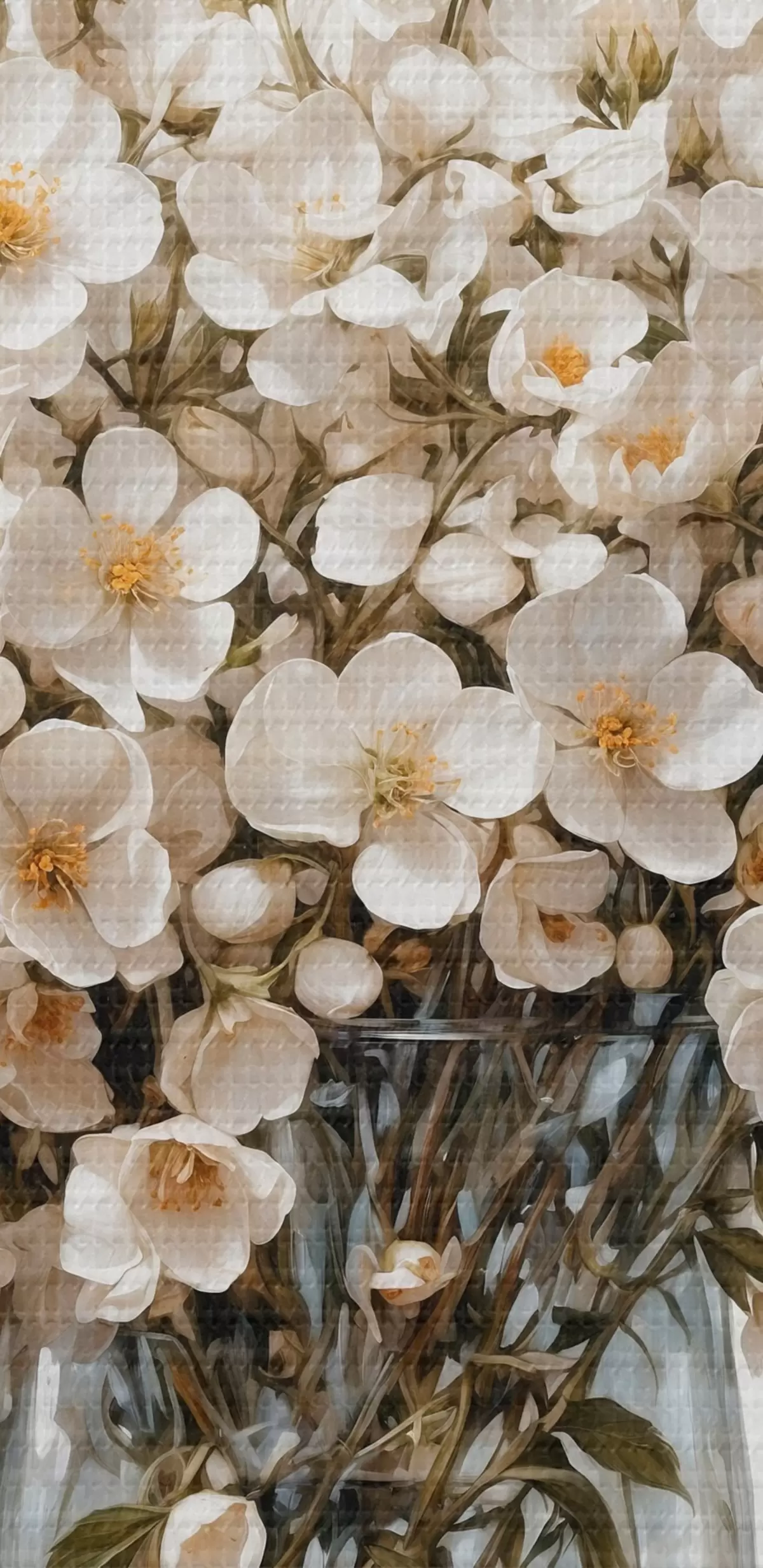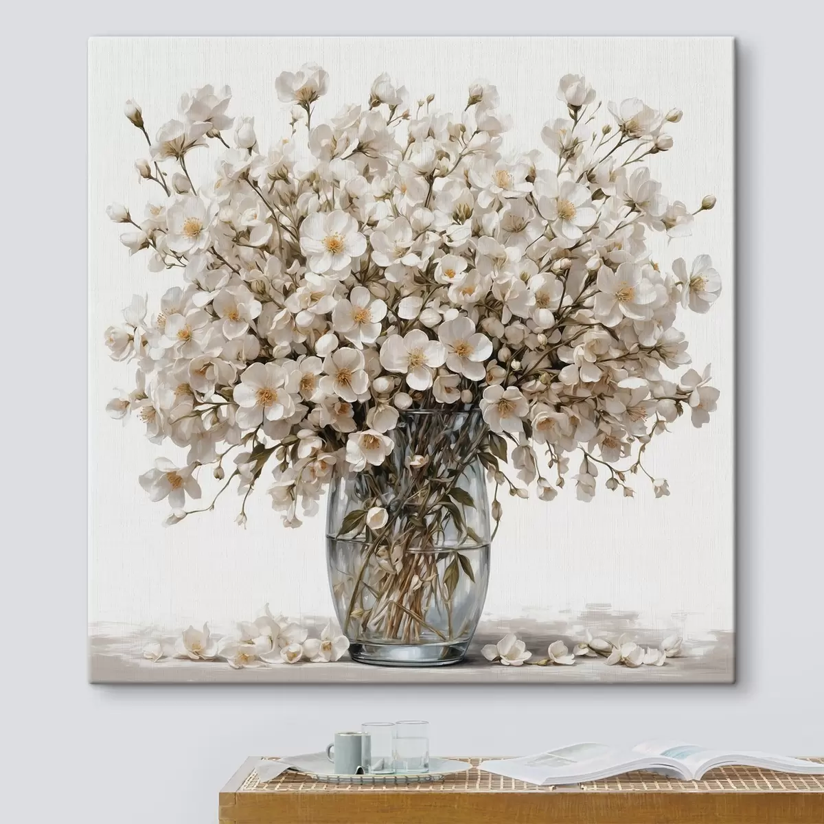 Картина Білі квіти в прозорій вазі Арт. s44092