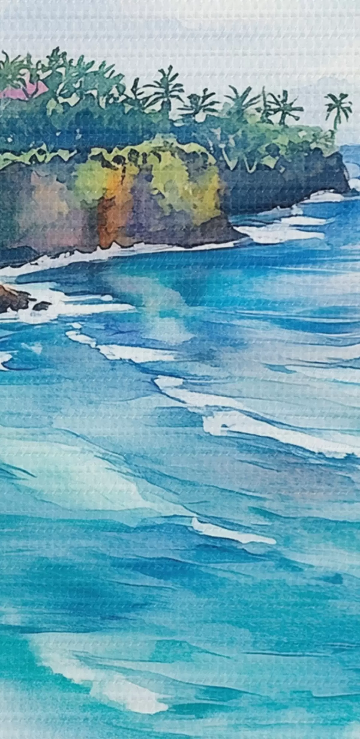 Картина Тропічний океанський пляж, пальми, квіти, акварельний стиль Арт. s44145