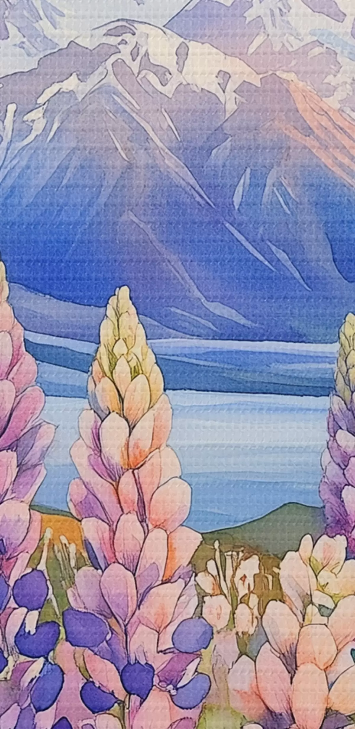 Картина Квіти люпину, луг, гори, акварель, захід сонця, небо Арт. s44146