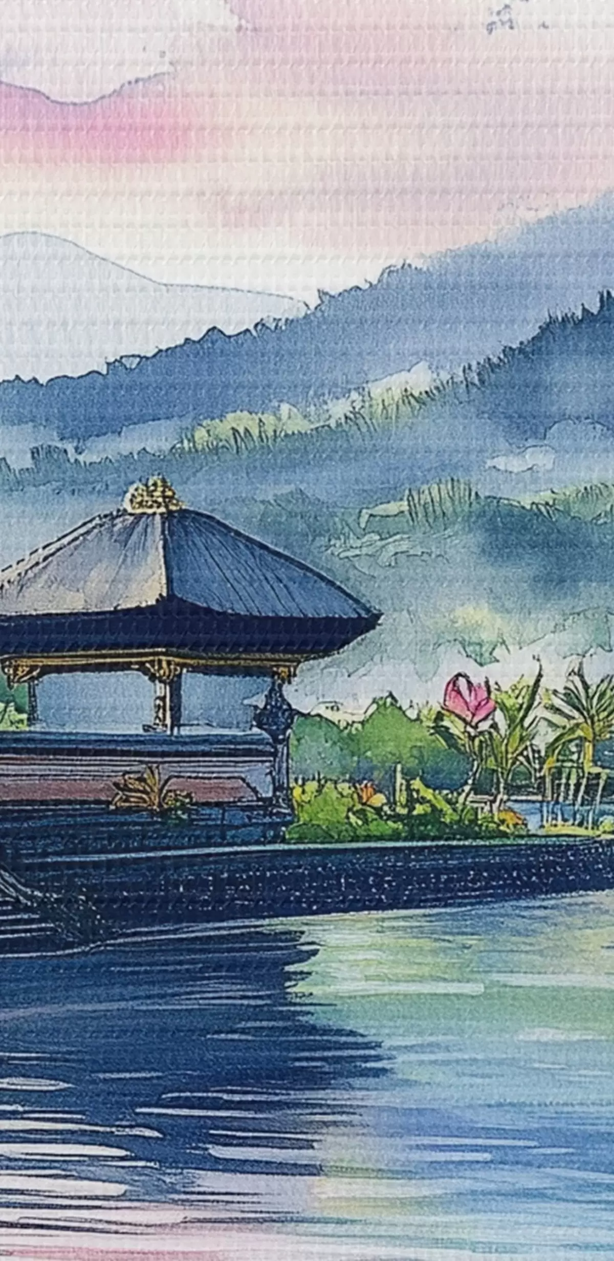 Картина Індонезійський острів, храм, буддизм, тропічна природа, акварельний стиль s44148