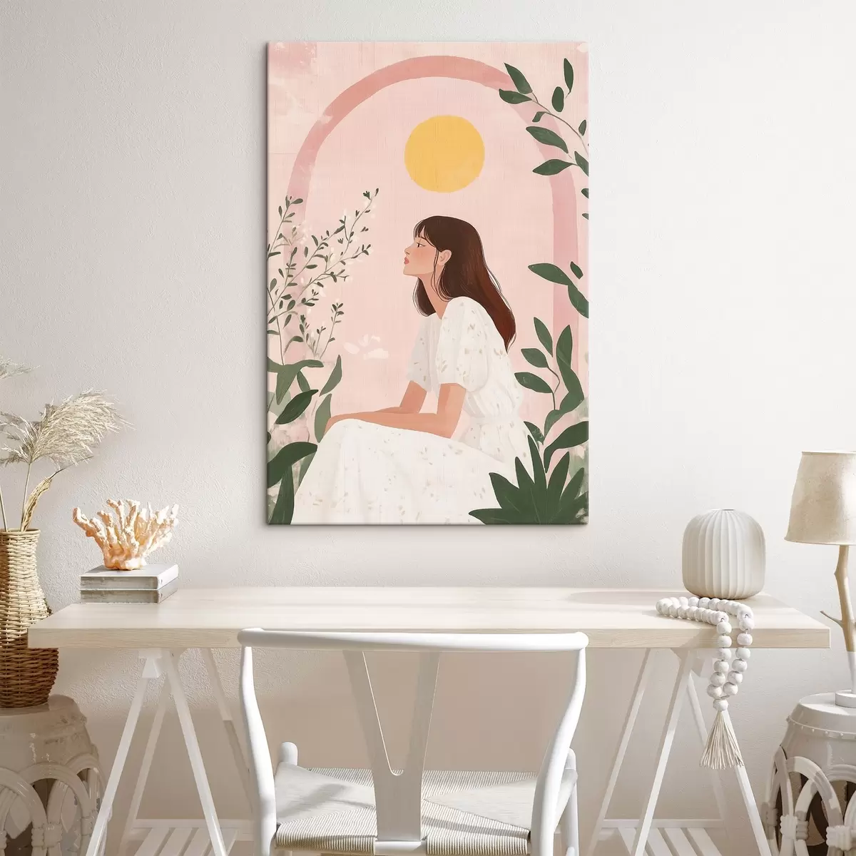 Картина Красива жінка в тропічному саду, сонце, пастельні кольори Арт. s44155