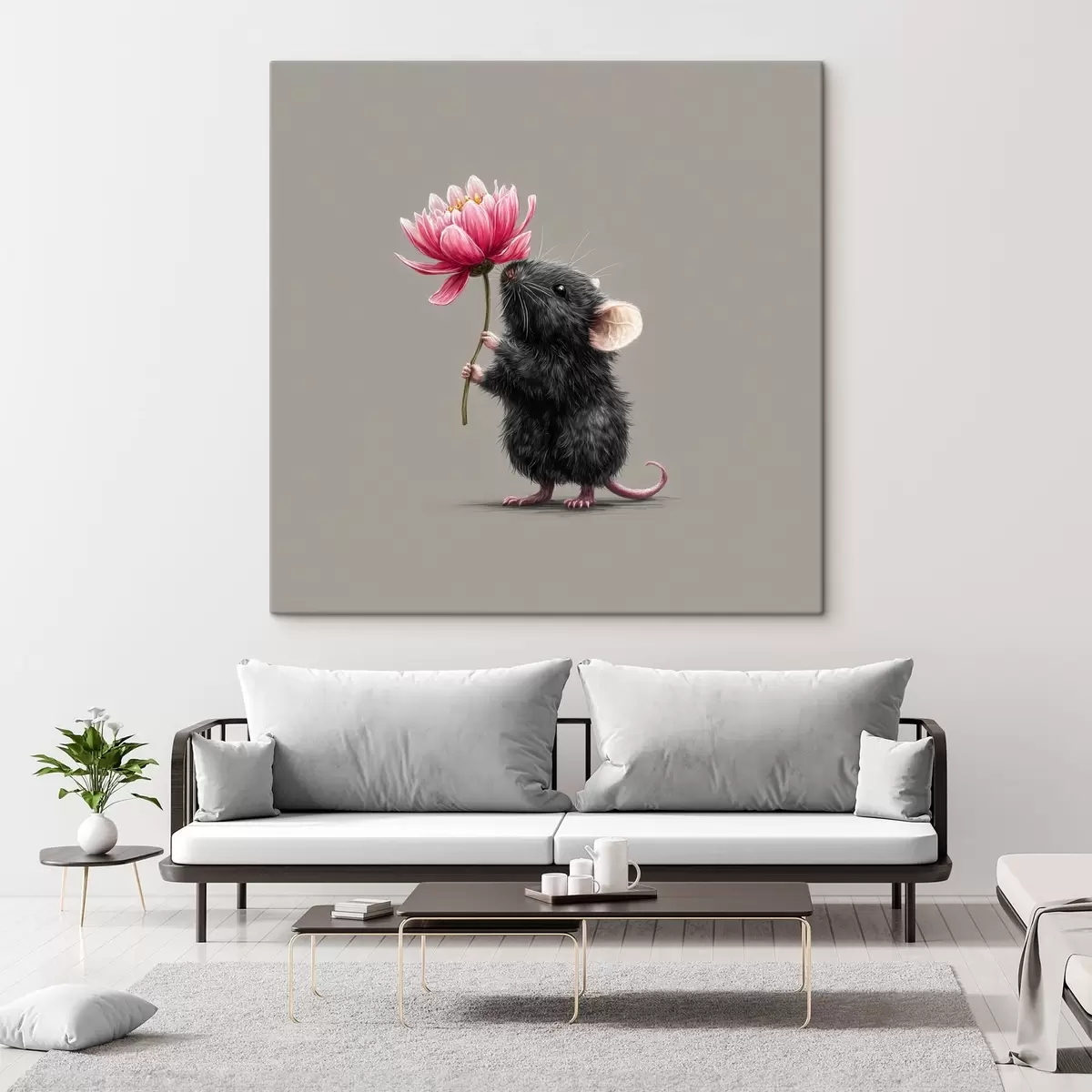 Картина Чарівна мишка вдихає аромат рожевої півонії Арт. s44248