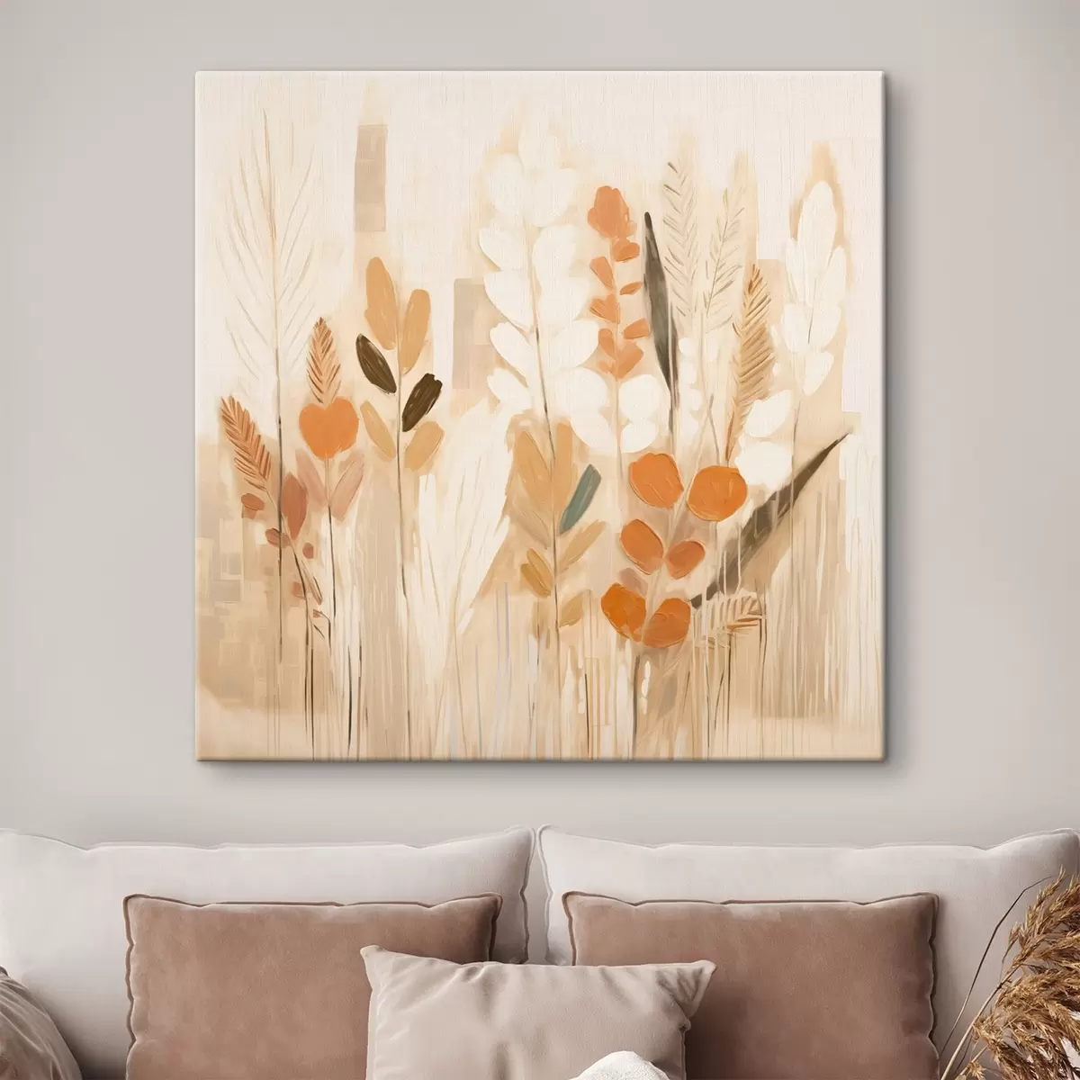 Картина Тепла абстракція з польовими травами та квітами в бежево-помаранчевій палітрі в стилі модерн Арт. s44252