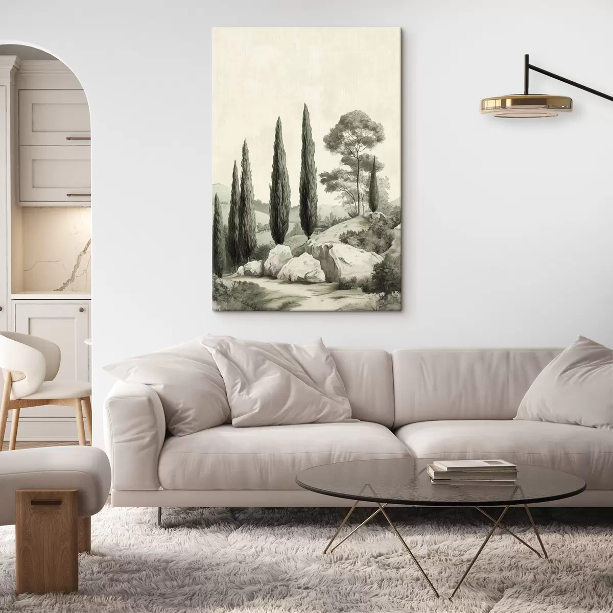 Картина Тосканські пейзажі, пастельні кольори, кипариси, скелі, сільський стиль Арт. s44307