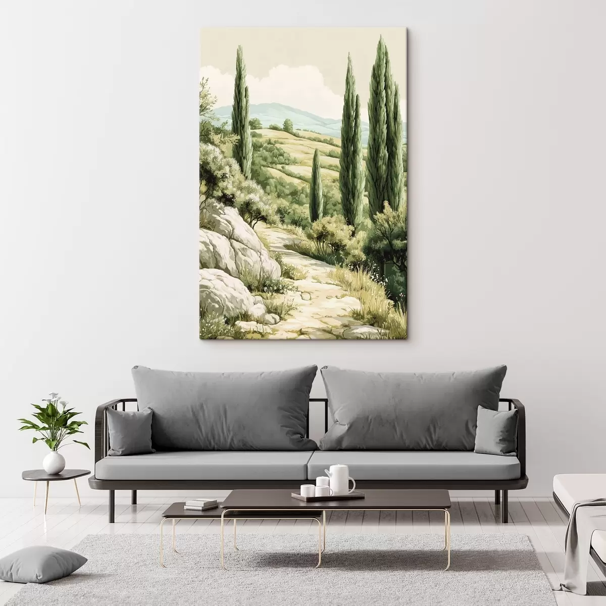 Картина Літні пейзажі з кипарисами та зеленими пагорбами, сільський стиль Арт. s44308