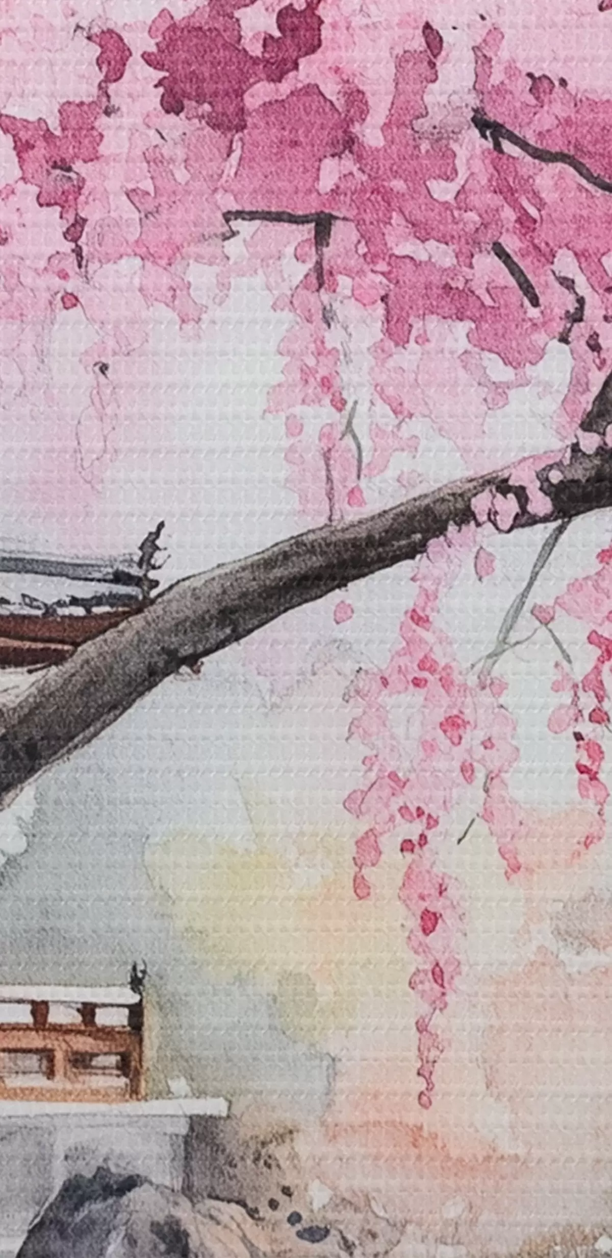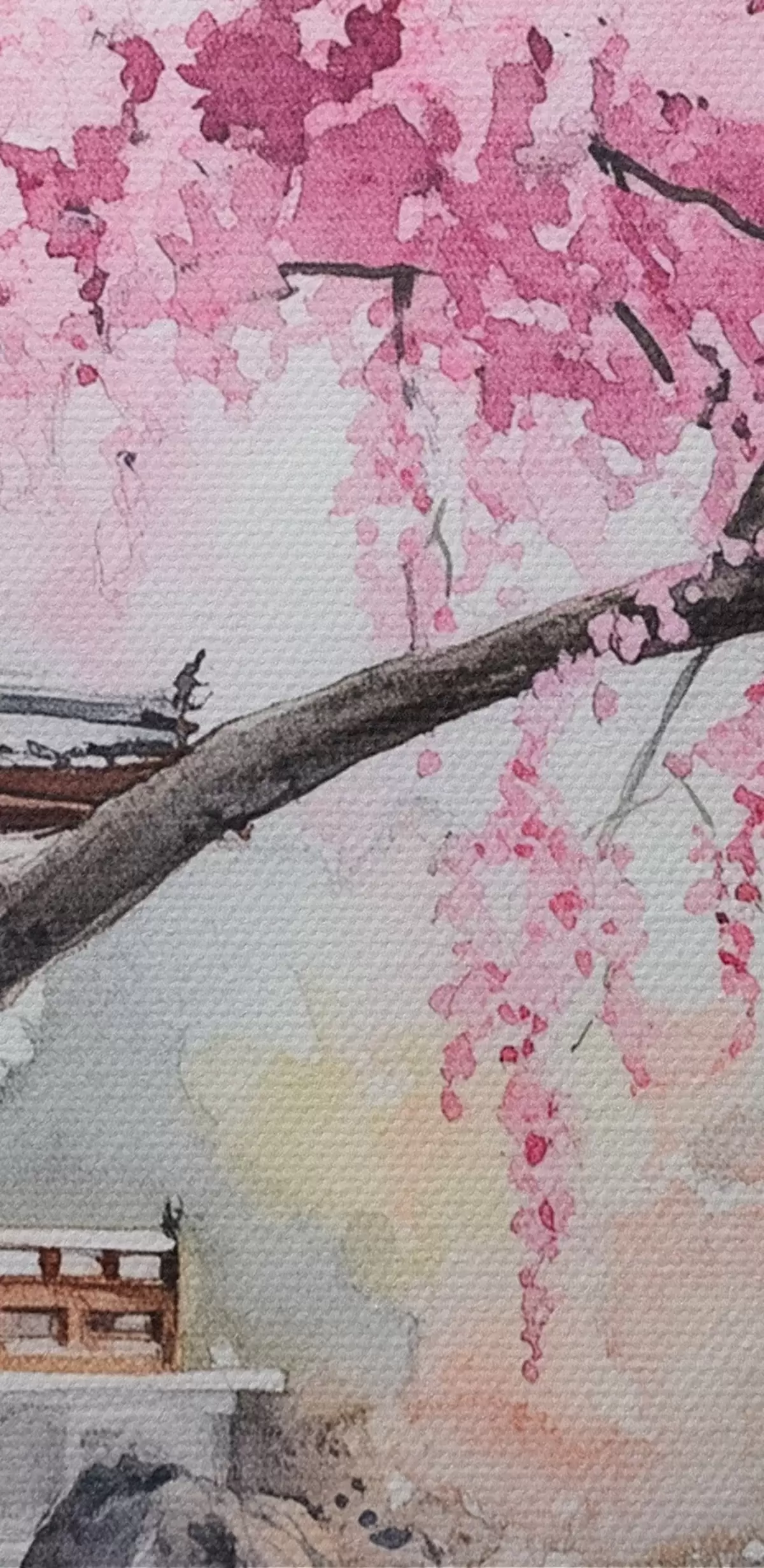 Картина Рожева вишня біля будинку на озері, Японія, східний стиль, акварель s44312
