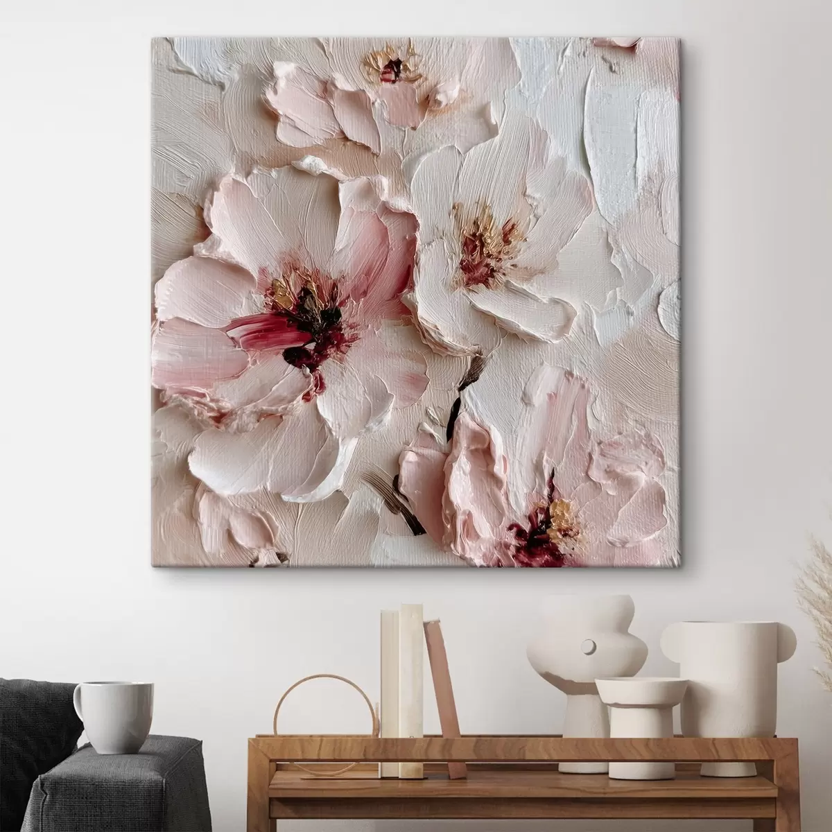 Картина Квіти з імітацією стилю імпасто в рожево-білих штрихах Арт. s44333