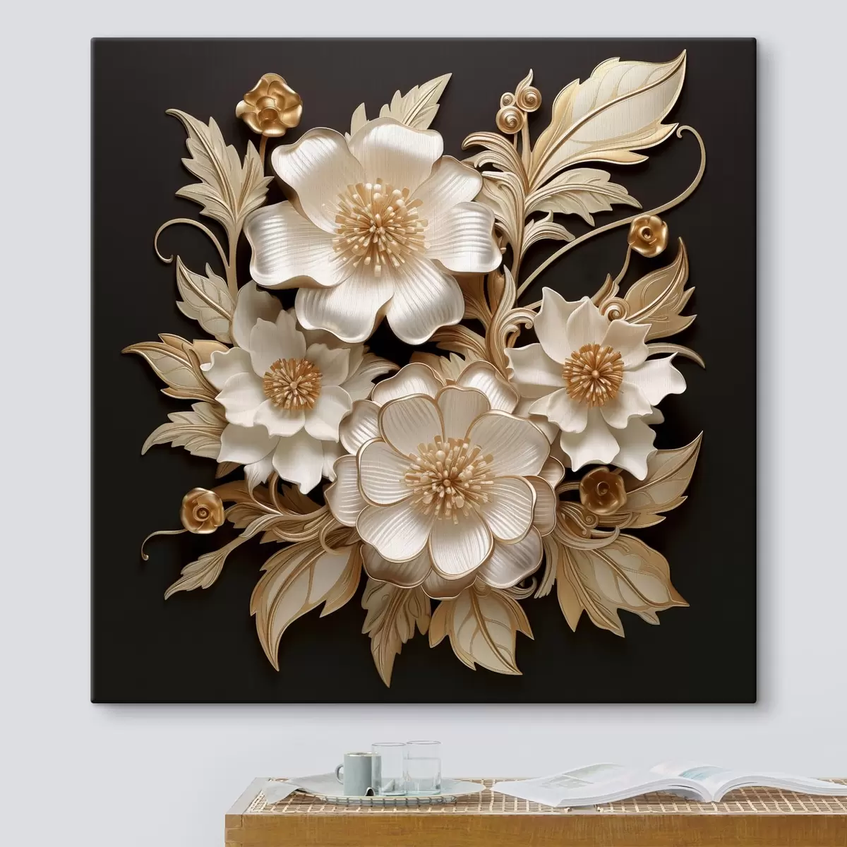 Картина Об'ємні білі квіти на чорному тлі s44340