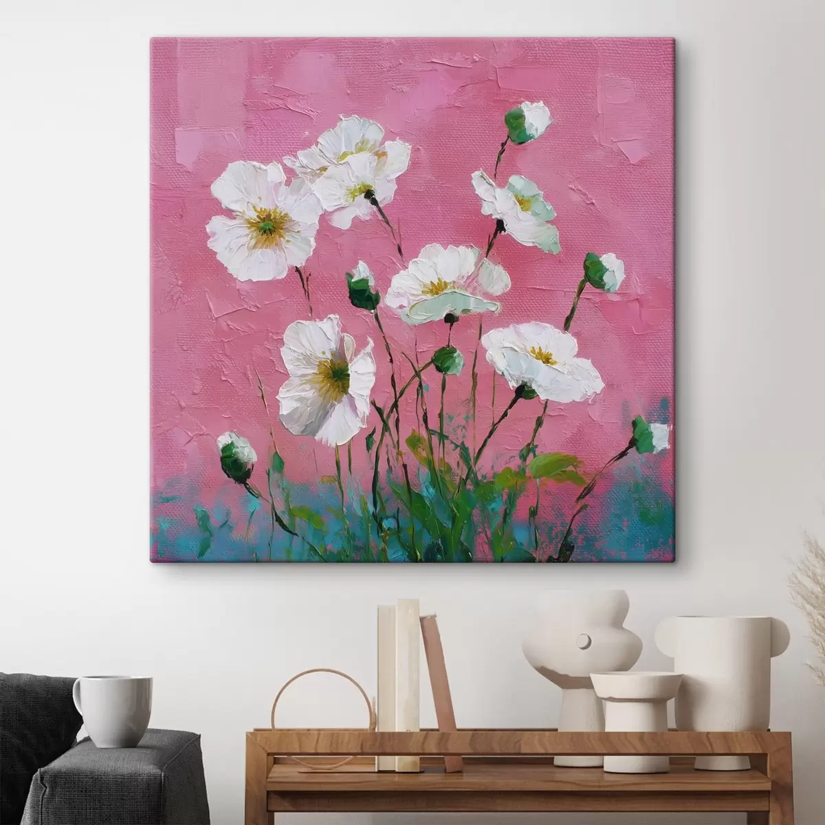 Картина Білі квіти на рожевому фоні Арт. s44360