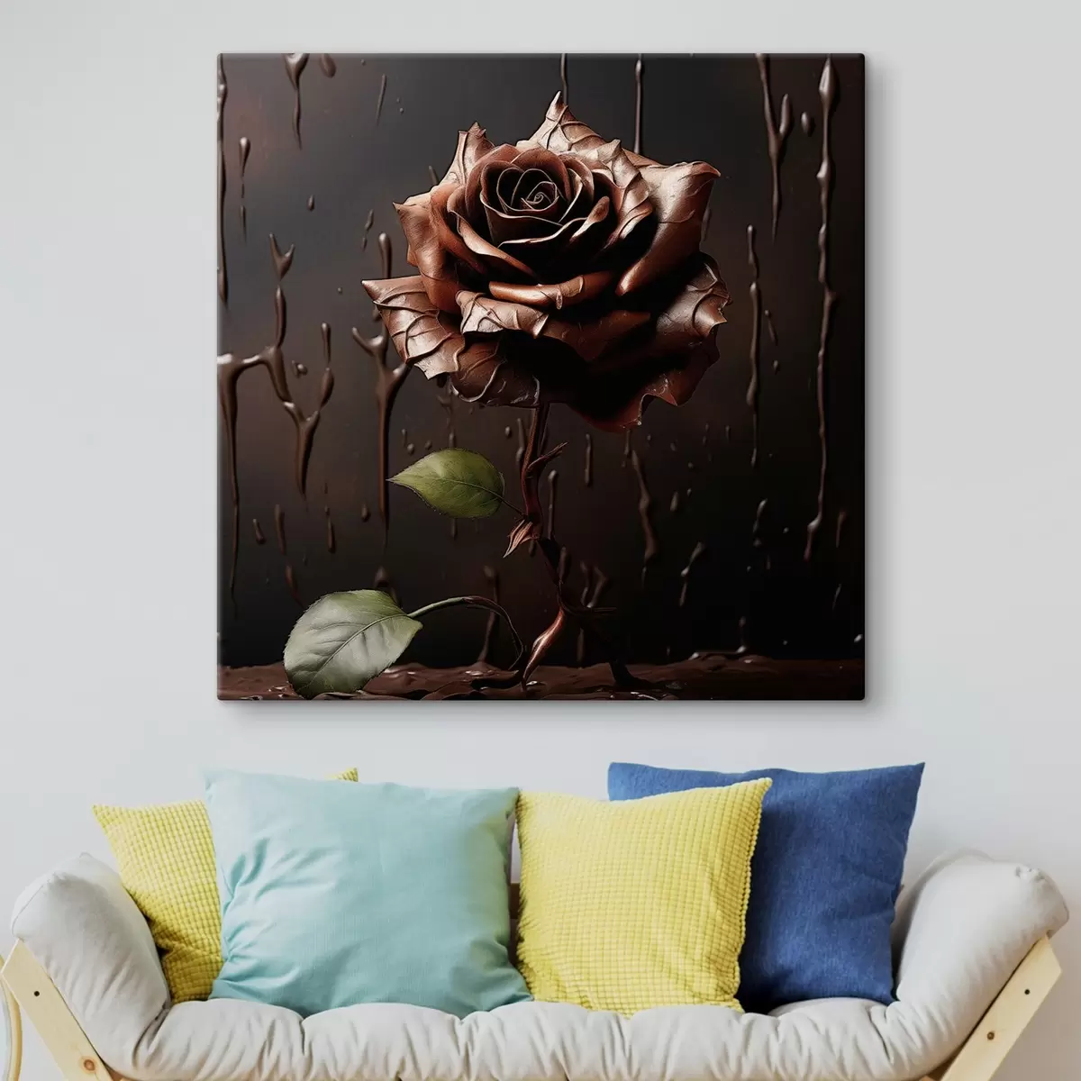 Картина Коричнева троянда на темному тлі з шоколадними вкрапленнями s44381