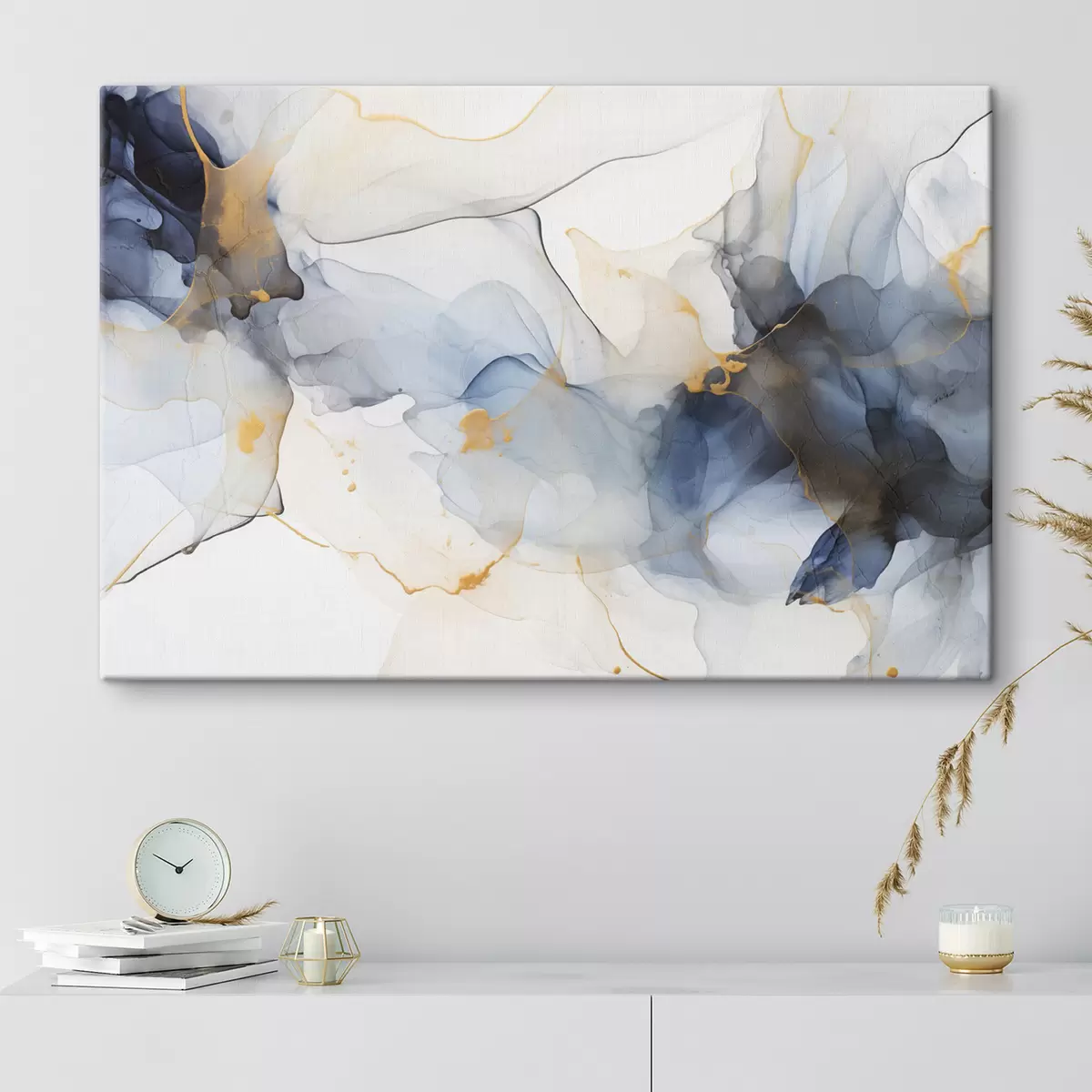 Картина Абстрактний живопис синьою тушшю, текучі та органічні форми, ніжні текстури на білому тлі Арт. s44397