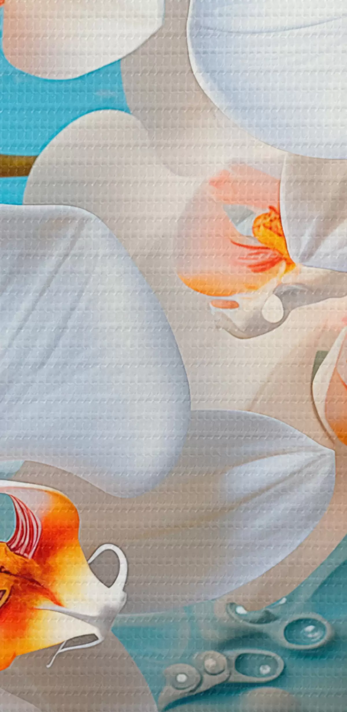 Щоб натягнути полотно на підрамники, не пошкодивши зображення, ми використовуємо дзеркальне відображення.