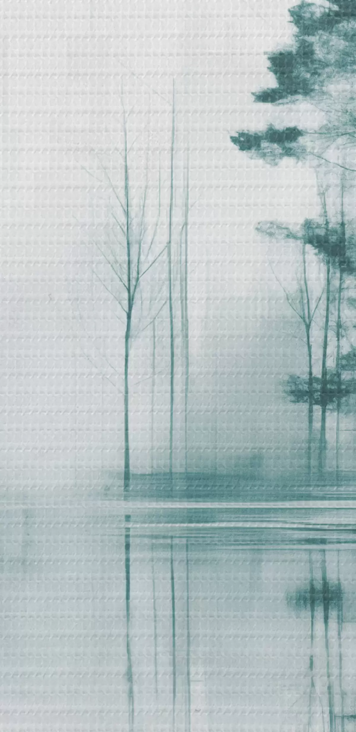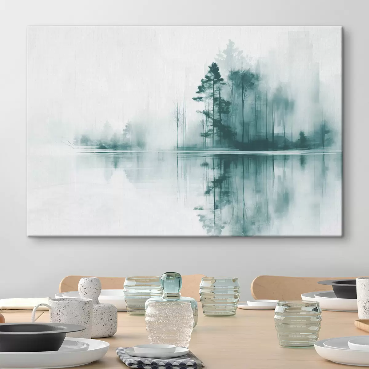 Картина Абстрактний ліс з високими деревами, що віддзеркалюються у воді, приглушена кольорова палітра Арт. s44403
