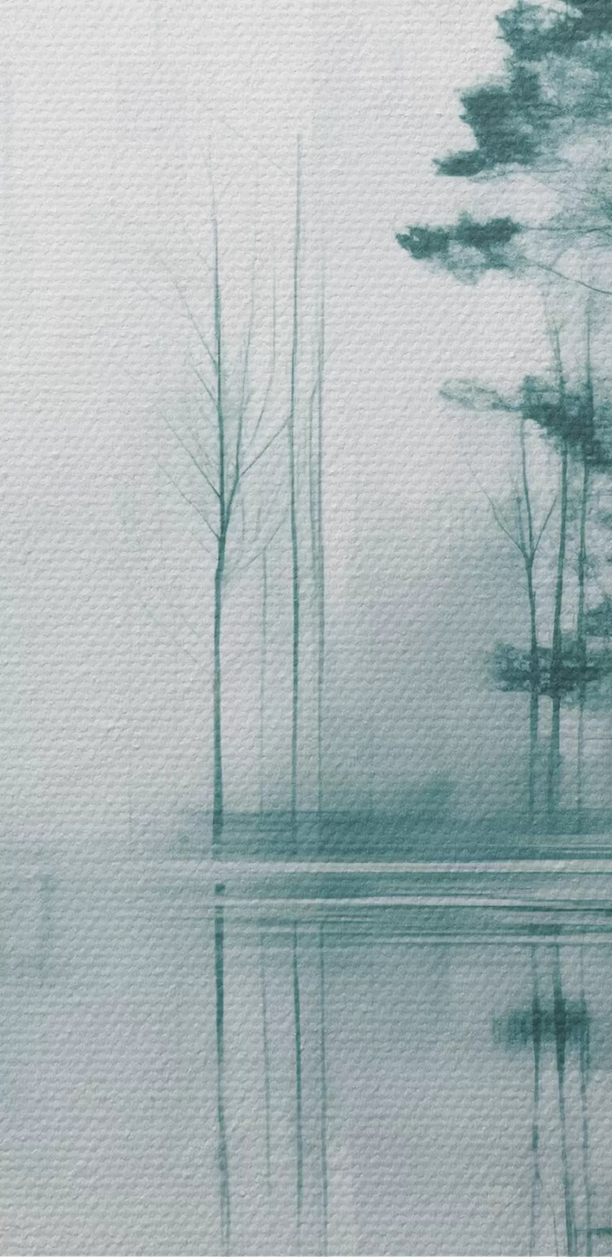 Картина Абстрактний ліс з високими деревами, що віддзеркалюються у воді, приглушена кольорова палітра s44403