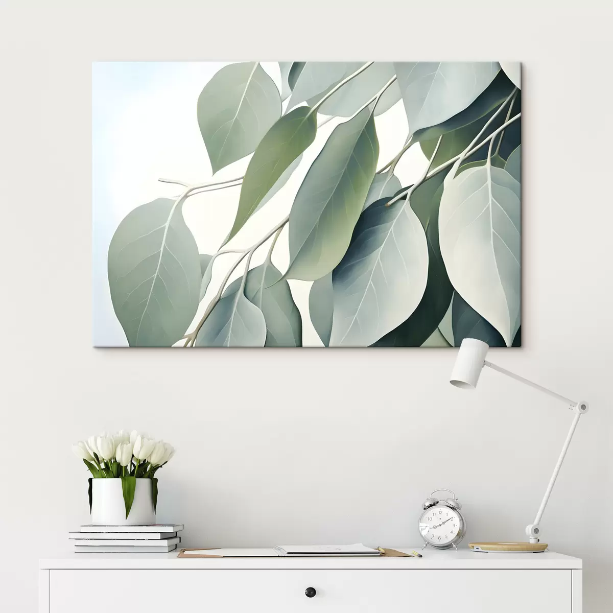 Картина Листя евкаліпта з м'якою, приглушеною палітрою кольорів, заспокійливою і природною естетикою s44410