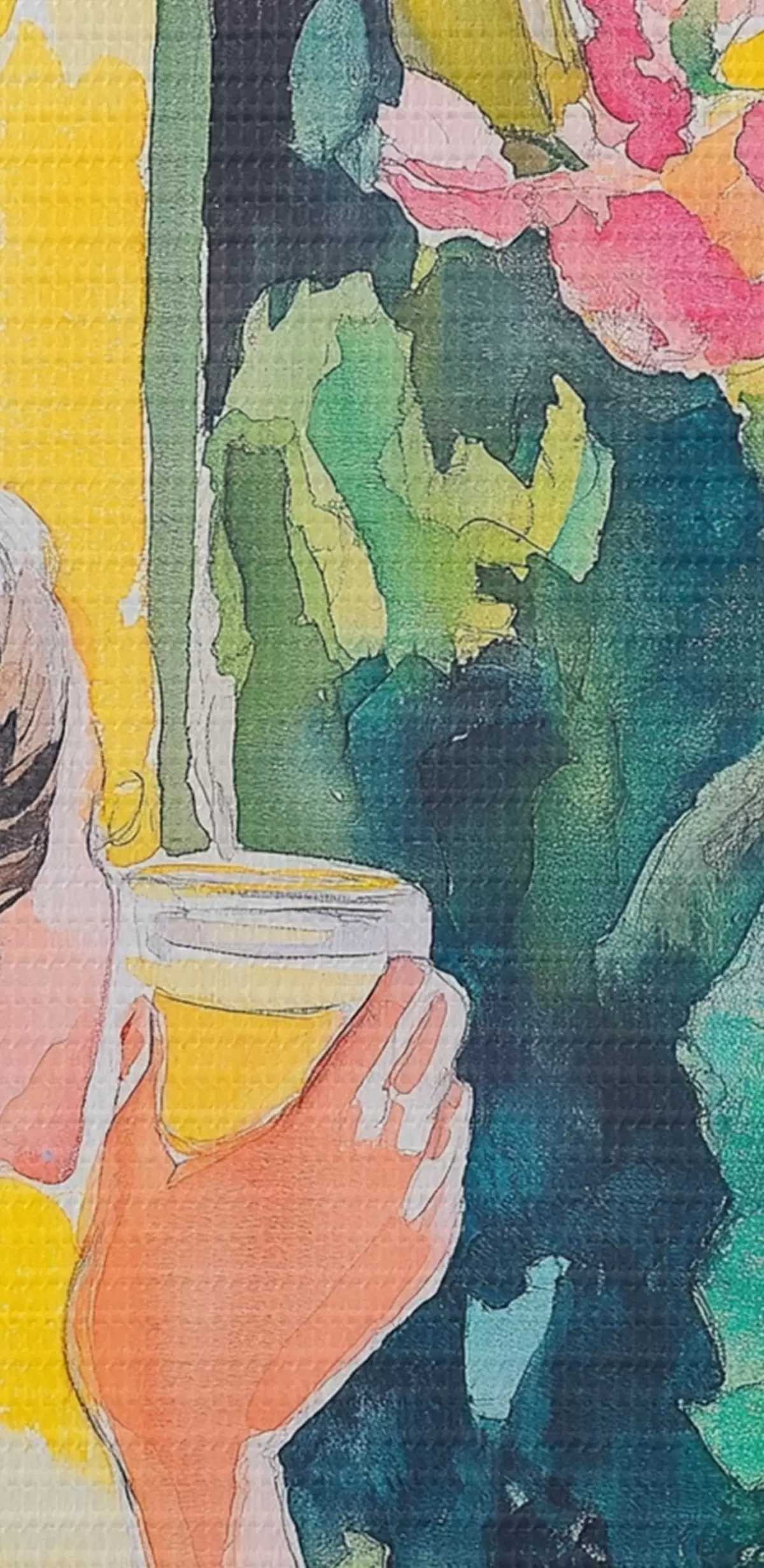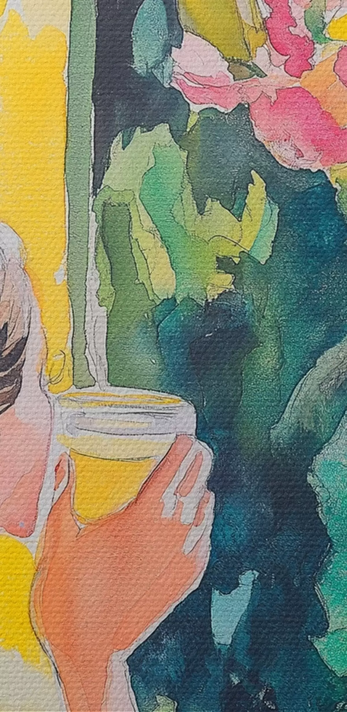 Картина Літні вібрації, дівчина в кафе, лімончелло, Італія, акварельний стиль s44505