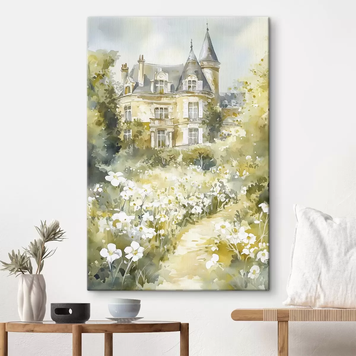 Картина Красивий замок із зеленню та білими квітами, в акварельному стилі Арт. s44506