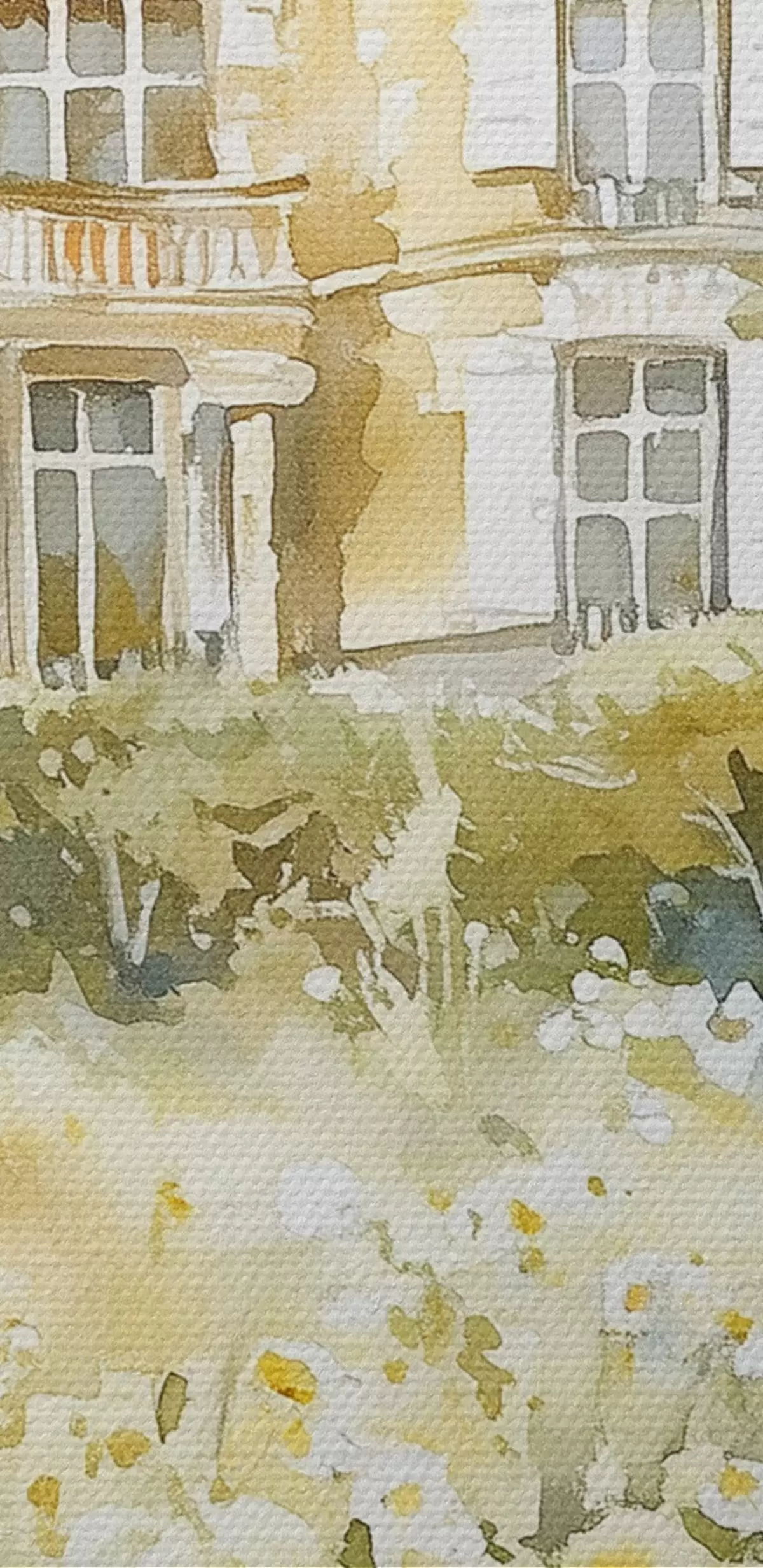Картина Красивий замок із зеленню та білими квітами, в акварельному стилі s44506