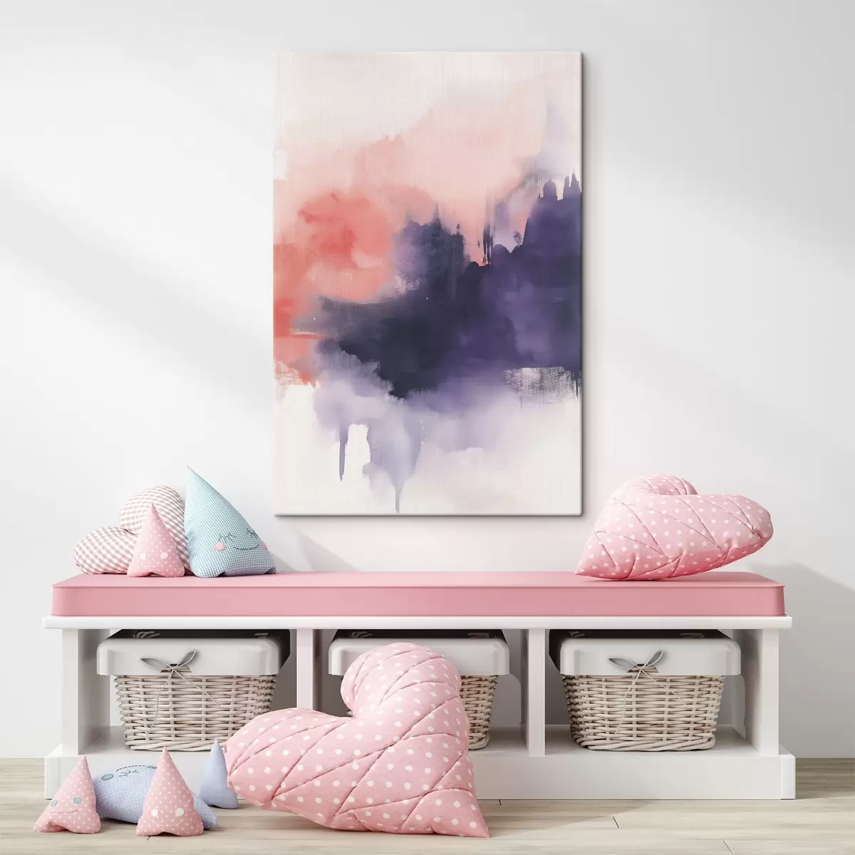 Картина Абстракція в стилі акрилу, мазки пензлем, фіолетовий і рожевий s44507