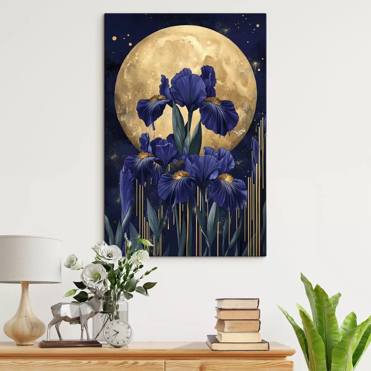 Картина Квіти ірисів, сяючий місяць, нічне небо, блакитні кольори Арт. s44510