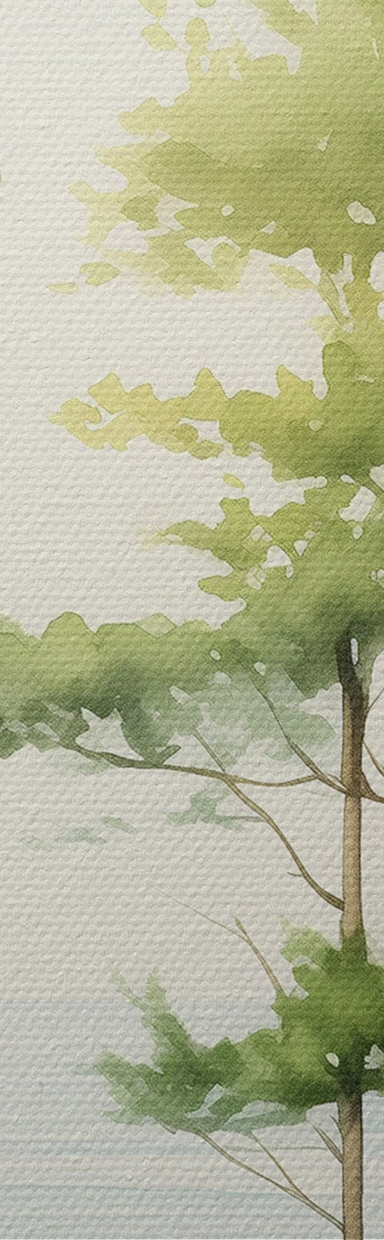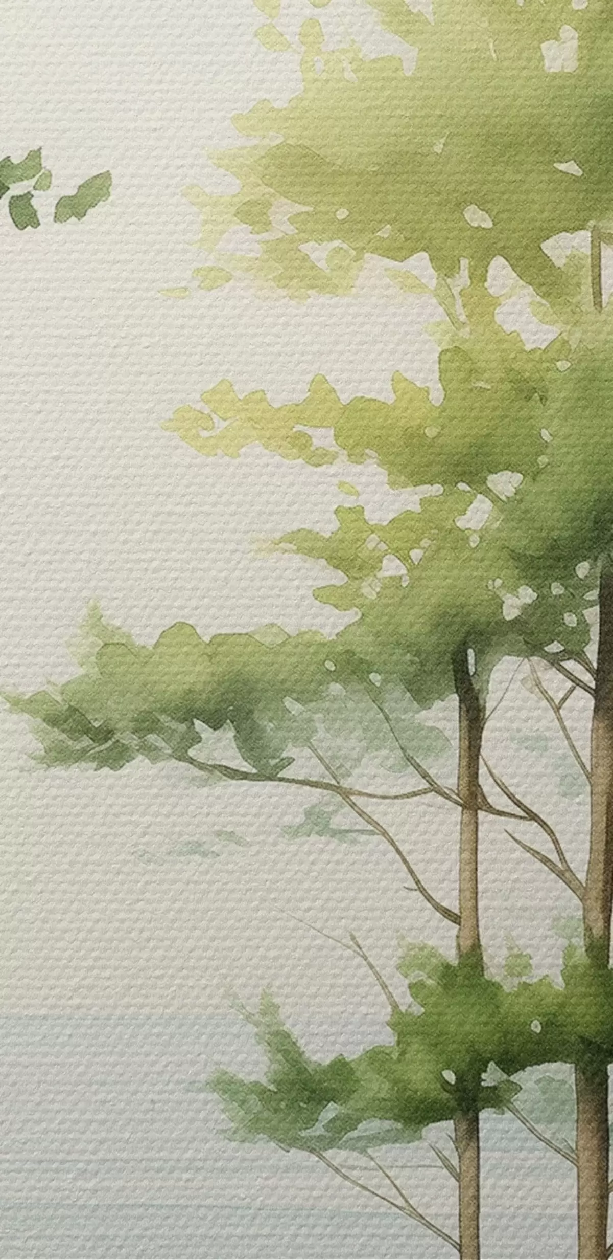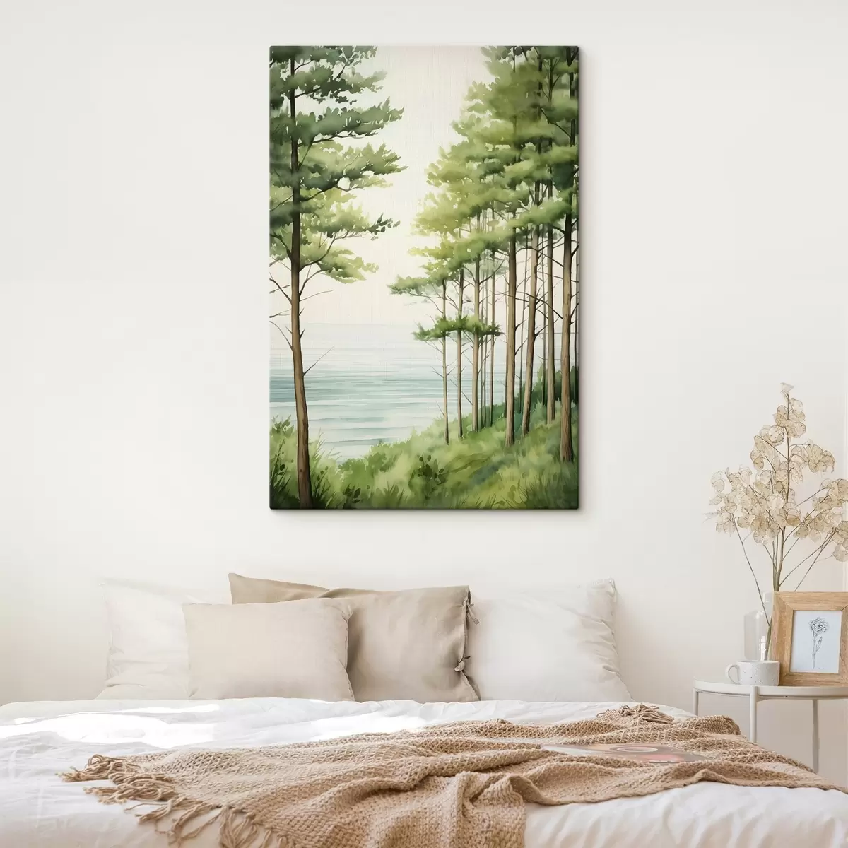 Картина Зелений сосновий ліс біля моря, акварельний стиль s44603