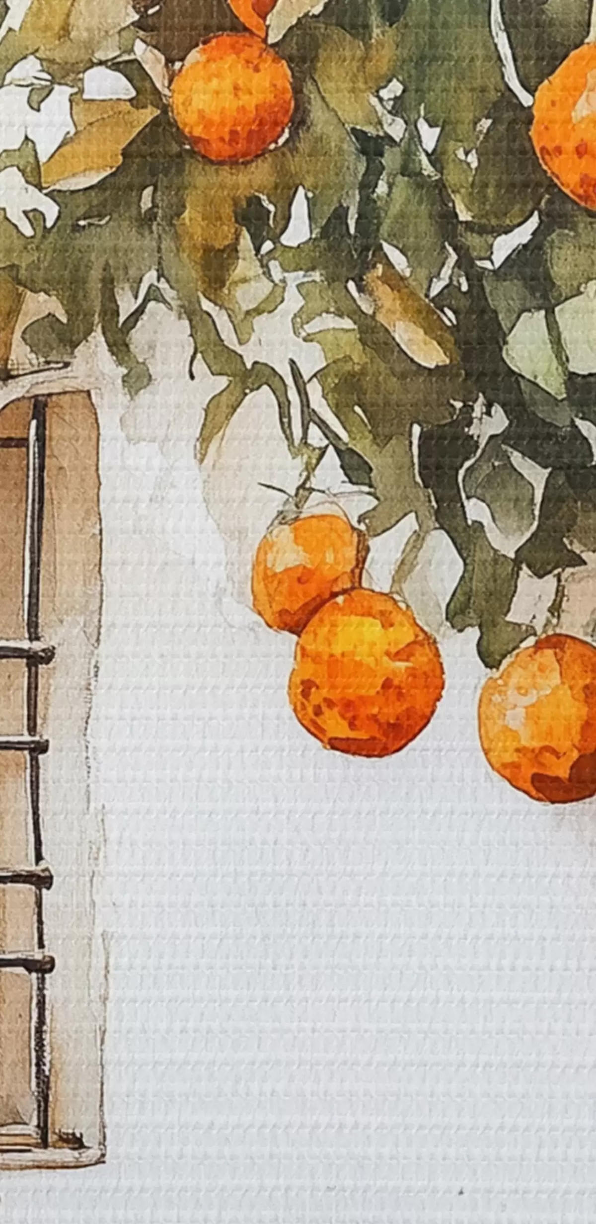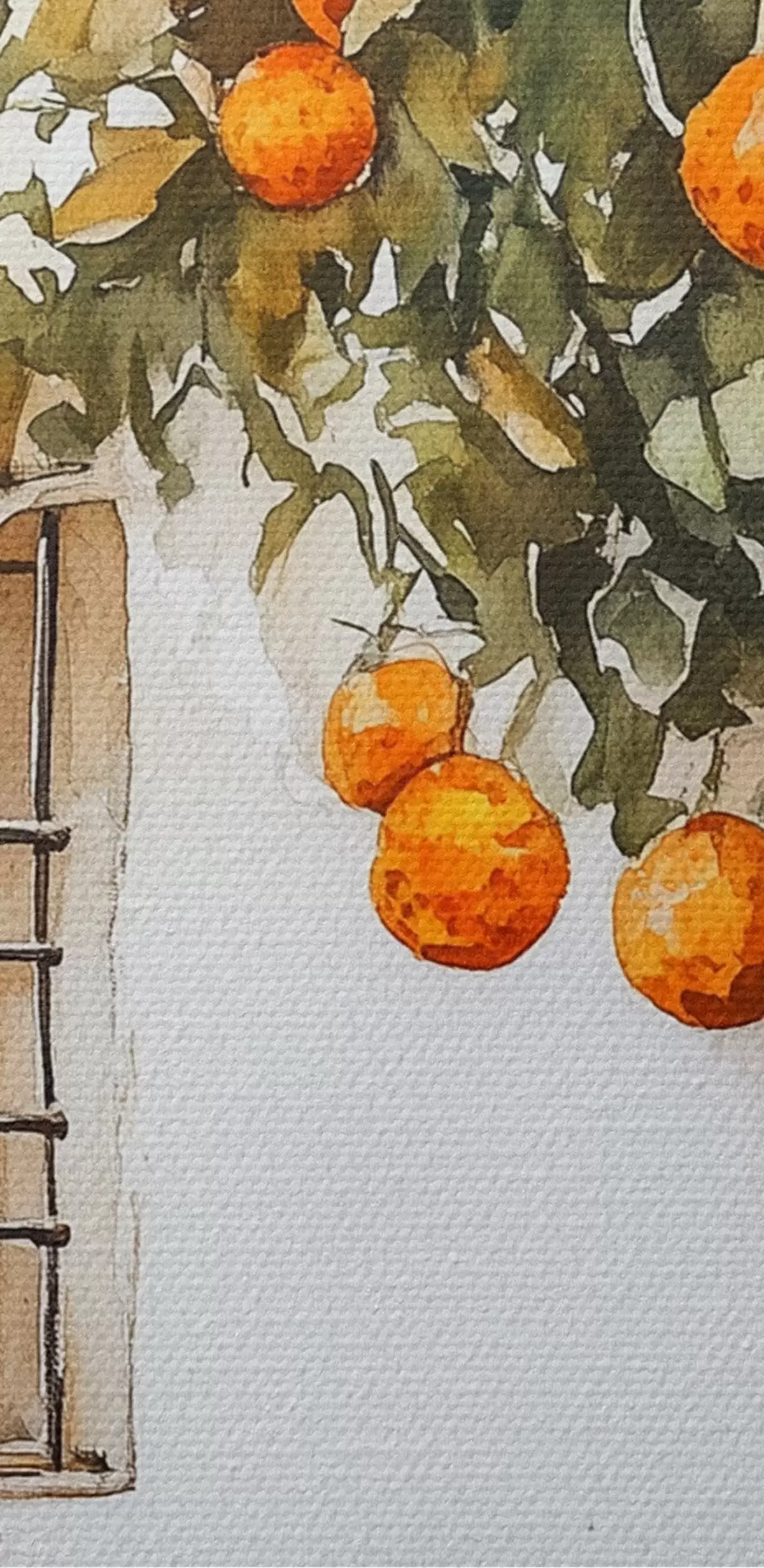 Картина Середземноморський білий будинок з апельсиновим деревом і велосипедом Арт. s44610