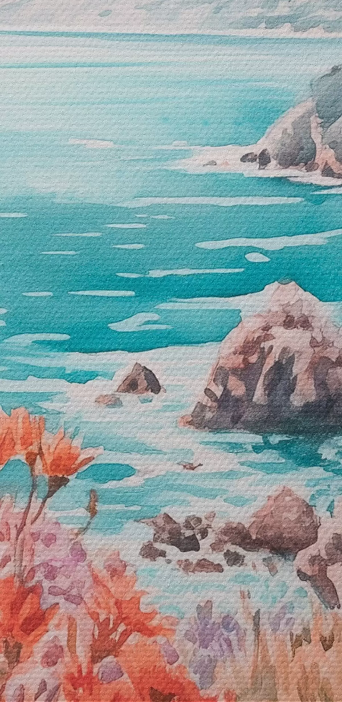 Картина Португальське узбережжя океану на заході сонця, лугові квіти Арт. s44612