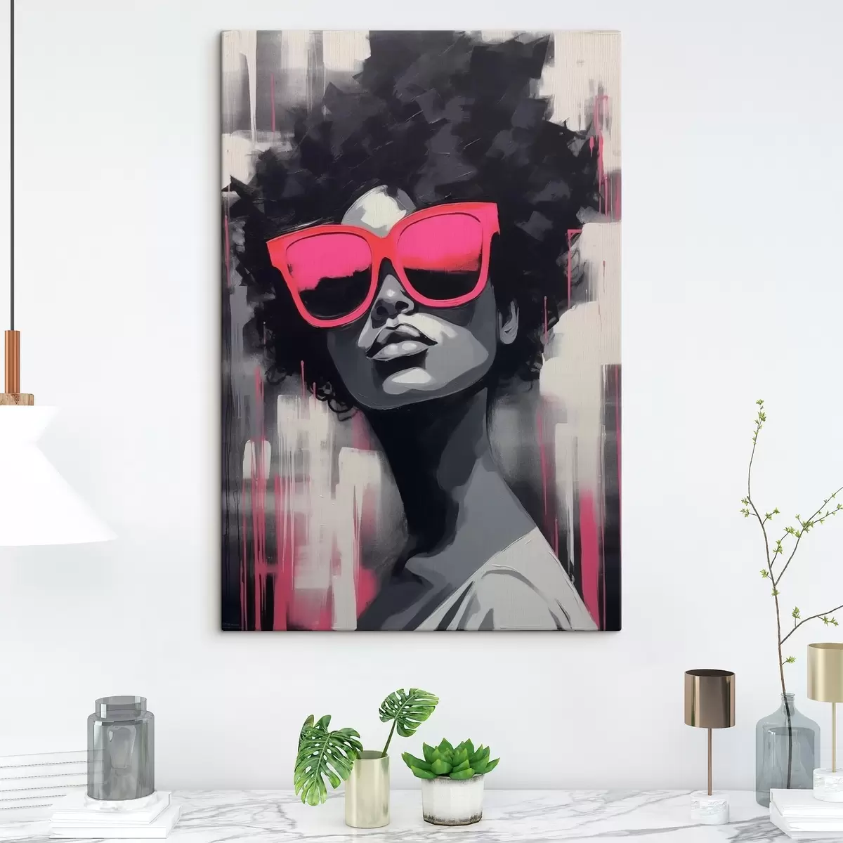 Картина Дівчина в рожевих окулярах, чорно-білий стиль Арт. s44624