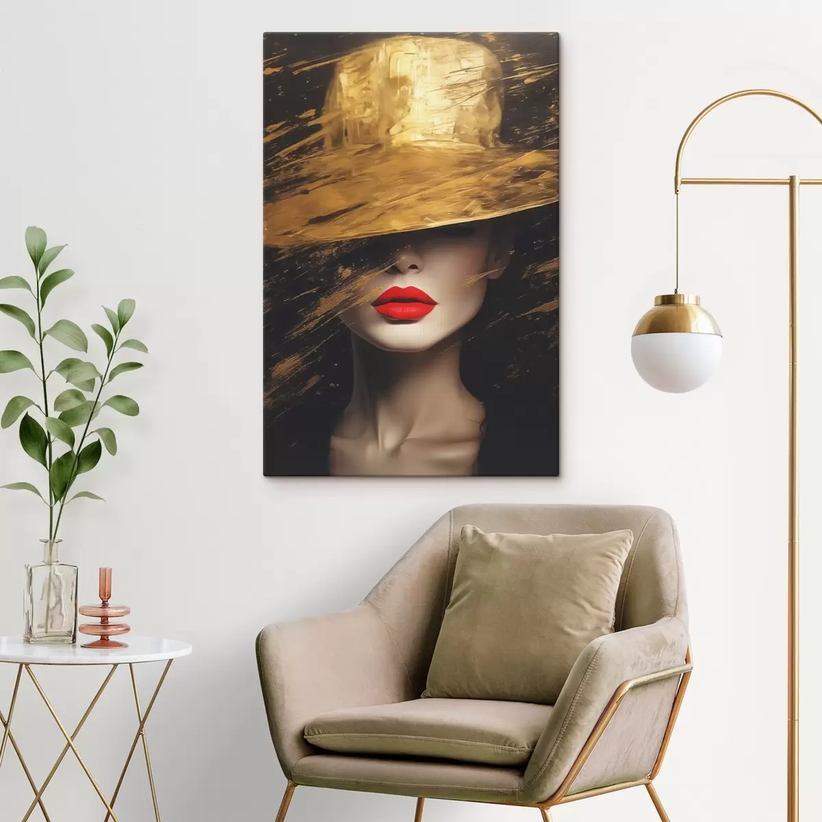 Картина Жіноче обличчя з червоною помадою під крислатим капелюхом Арт. s44691