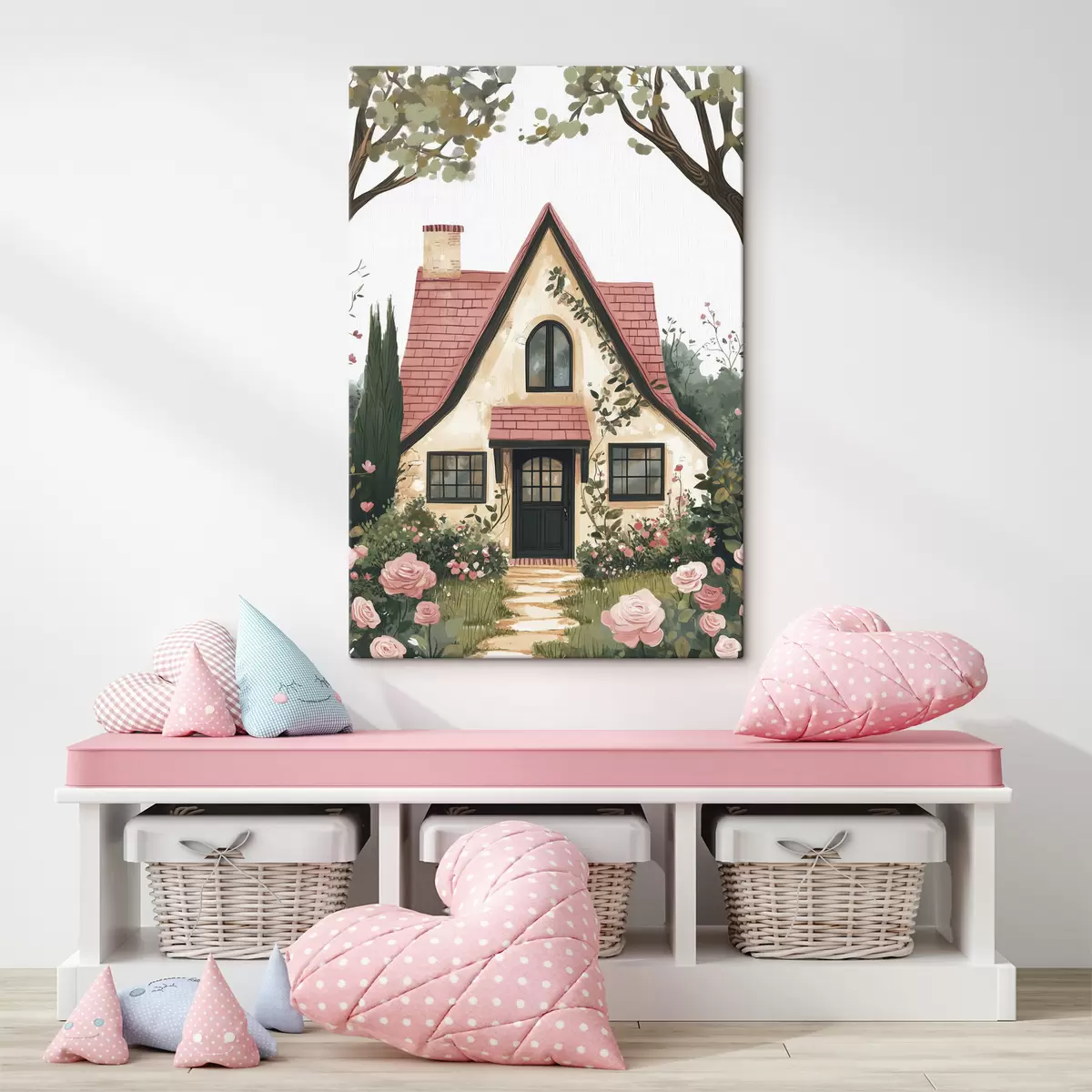 Картина Казковий будиночок у лісі, троянди, пастельний стиль s44718