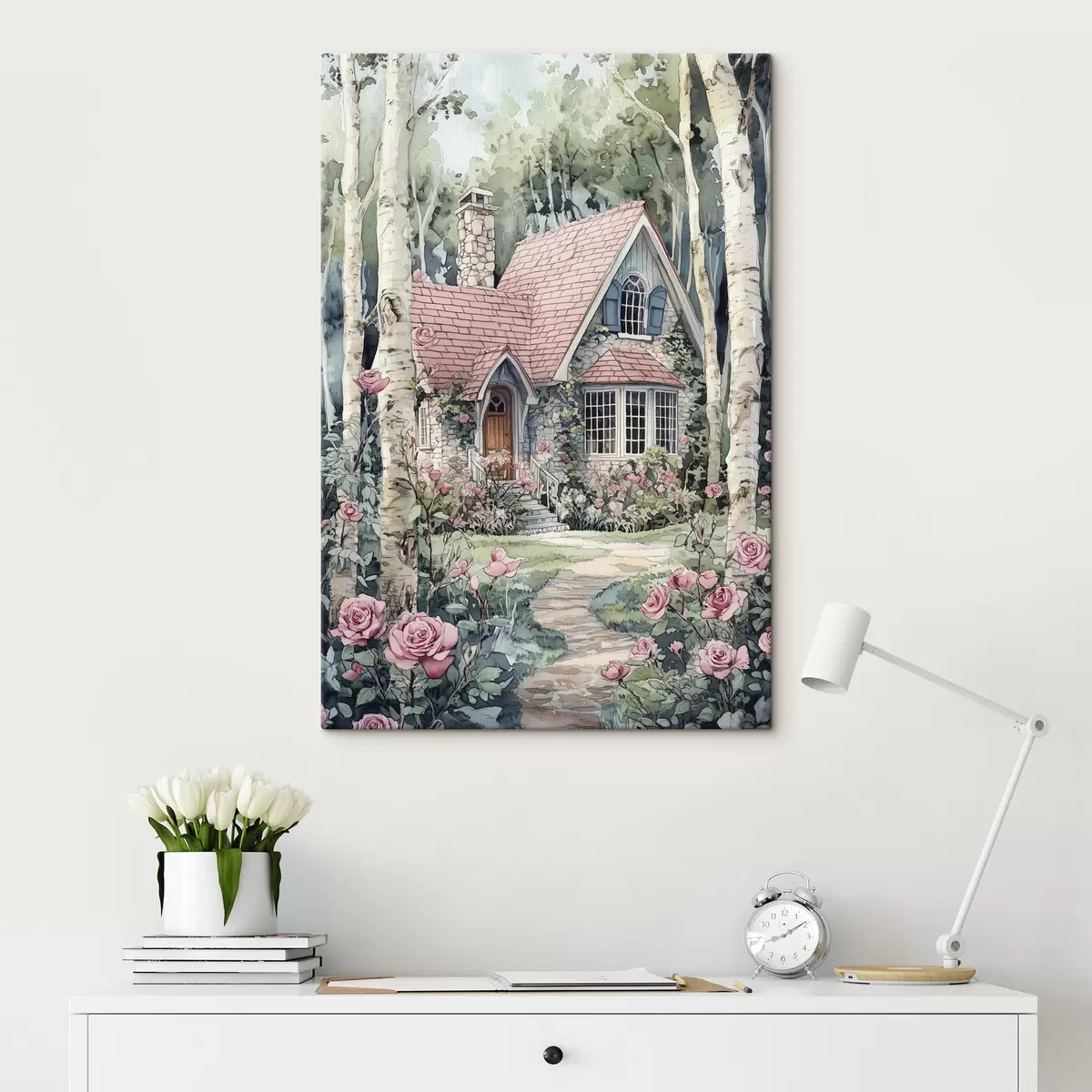 Картина Гарний будинок серед беріз, сад з трояндами Арт. s44721