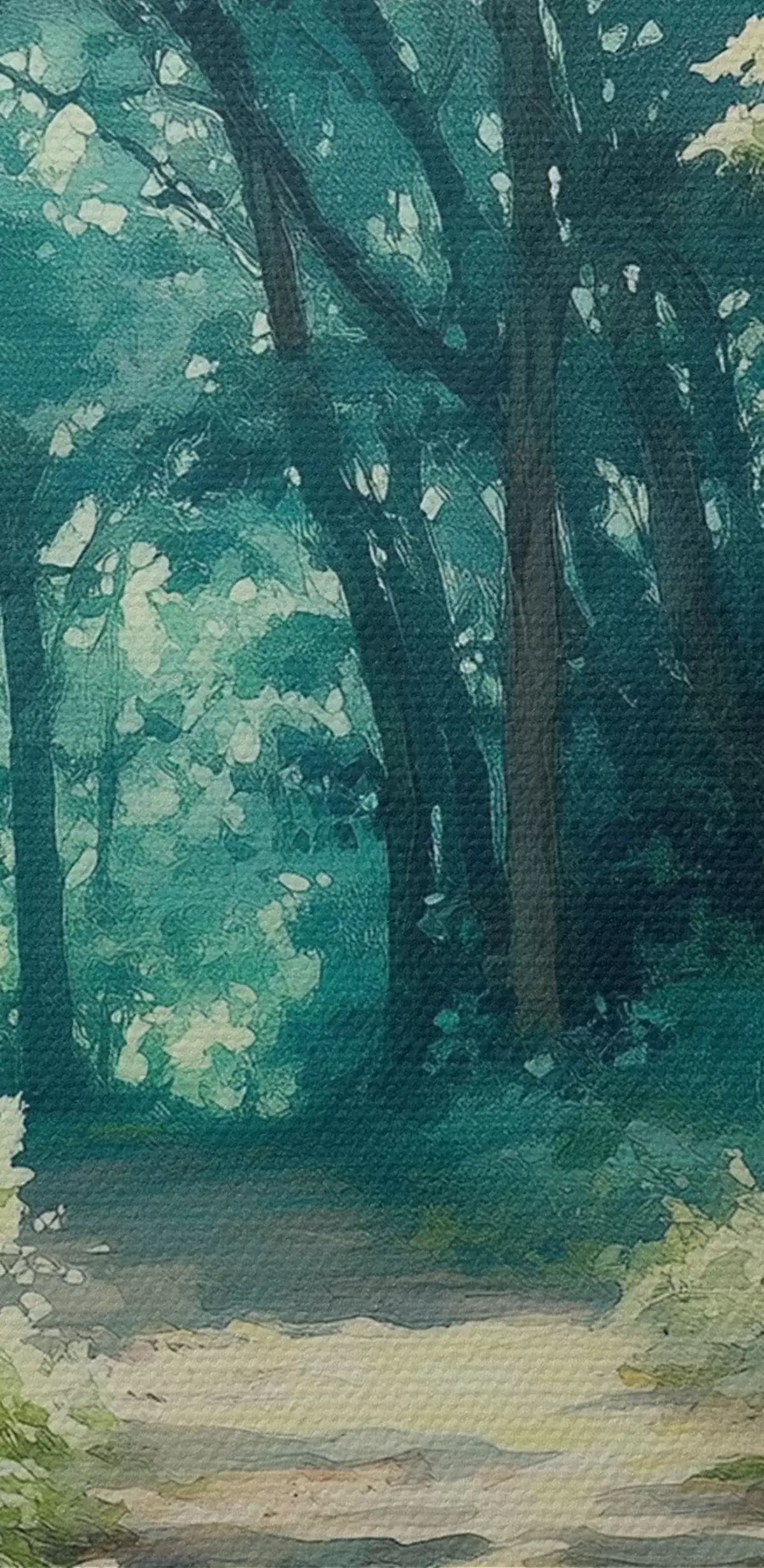 Картина Зелений ліс з деревами та сонячним світлом  s44784